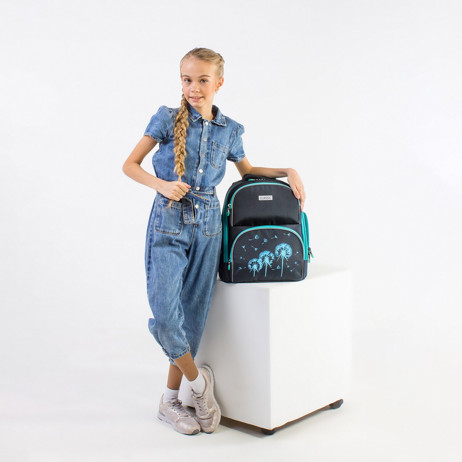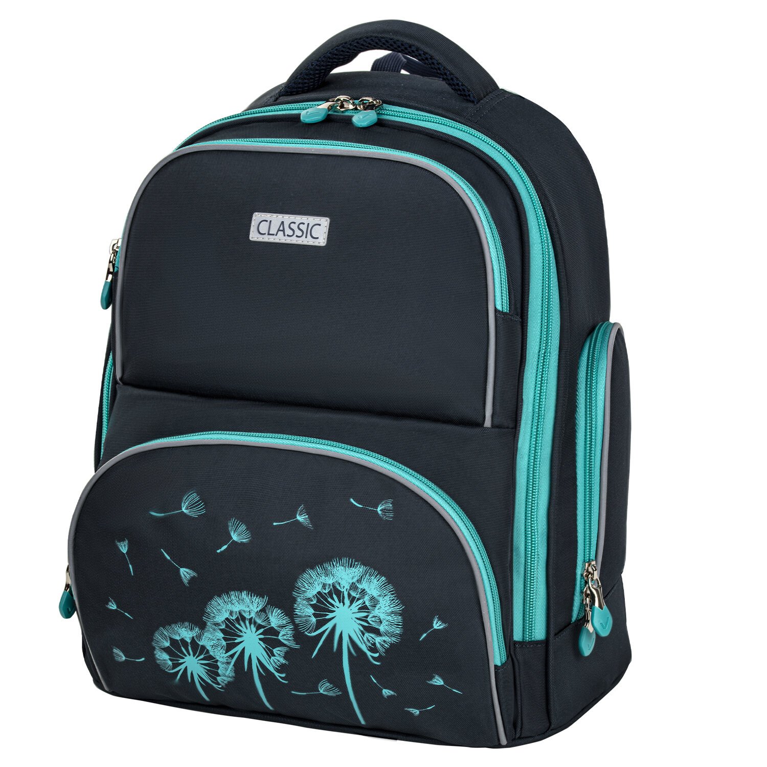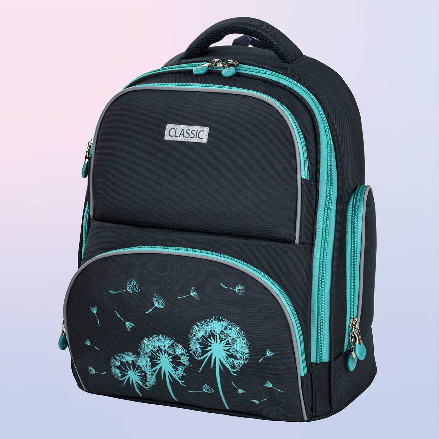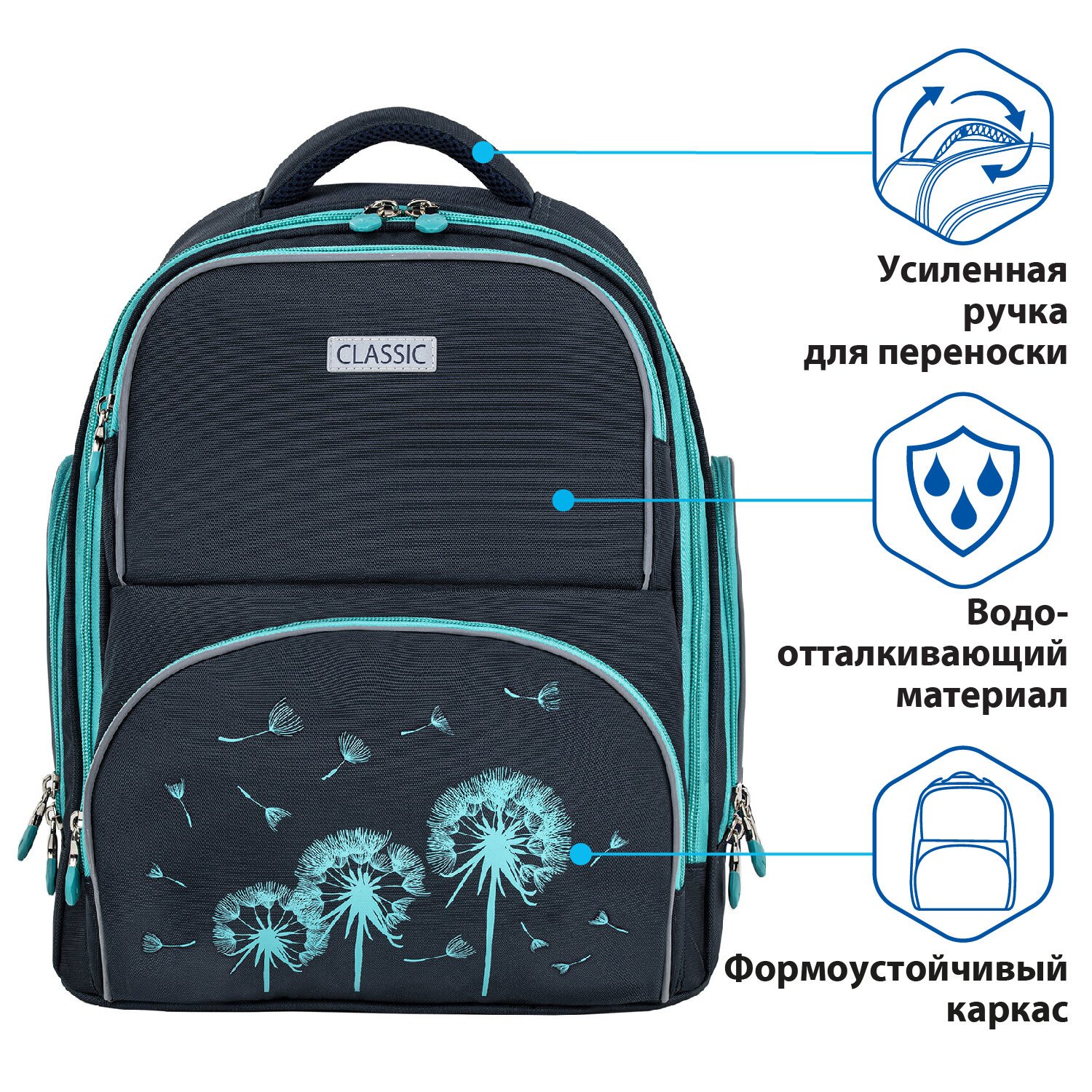 Рюкзак BRAUBERG CLASSIC, легкий каркас, премиум материал, "Dandelions", синий, 37x32х21 см, 270582