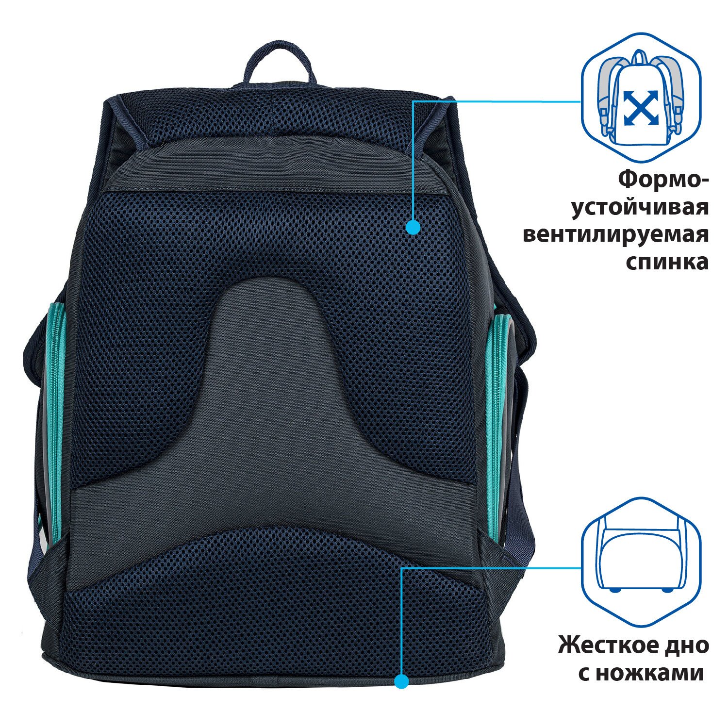 Усиленное жесткое дно не прогибается под весом учебников, обеспечивает устойчивость рюкзака и сохраняет содержимое, легко очищается.