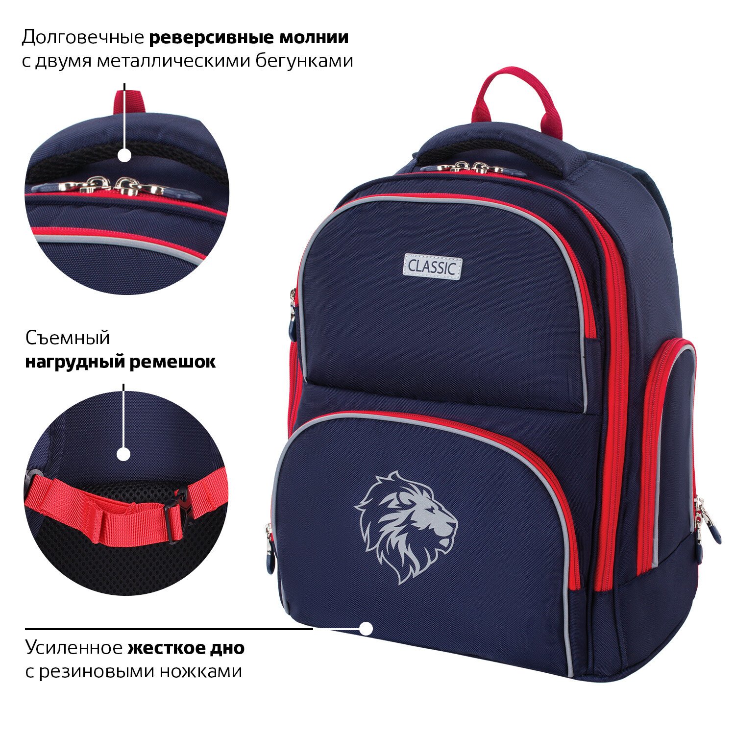 Рюкзак BRAUBERG CLASSIC, легкий каркас, премиум материал, "Lion", синий, 37х32х21 см, 228829