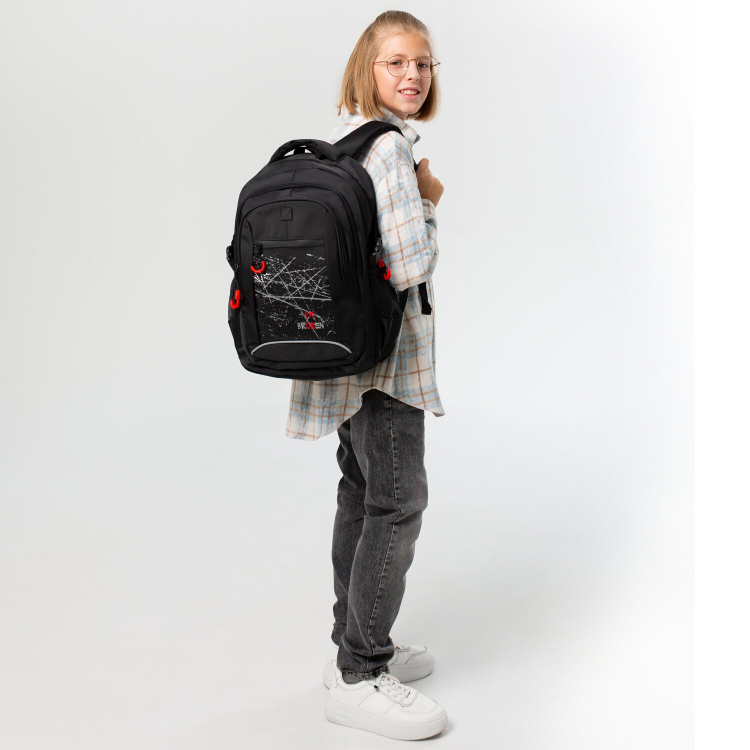 Рюкзак BRAUBERG CONTENT универсальный, 3 отделения, светоотр. принт, Br(ok)en, 47х33х18 см, 273845
