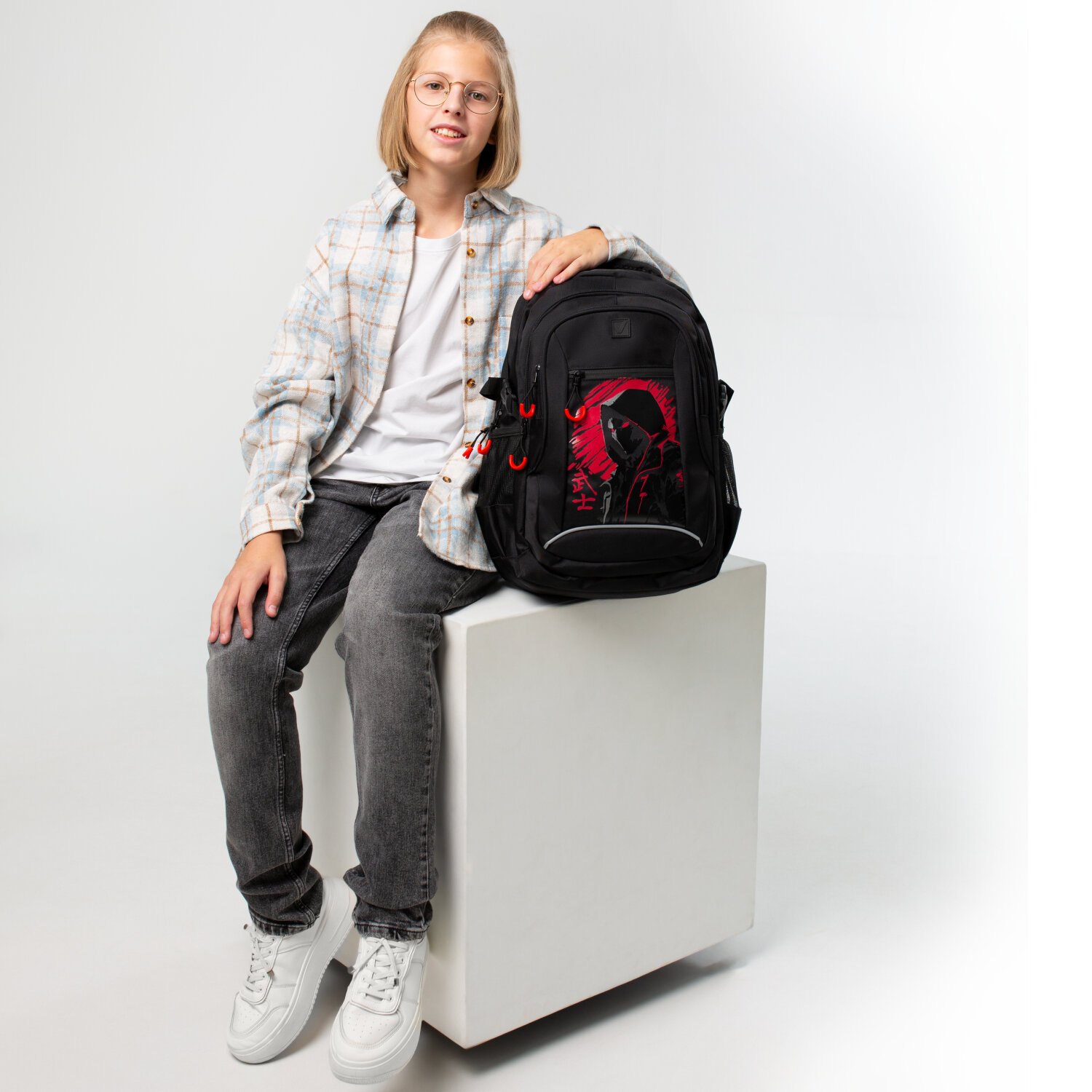 Рюкзак BRAUBERG CONTENT универсальный, 3 отделения, светоотр. принт, Red Moon, 47х33х18 см, 273843