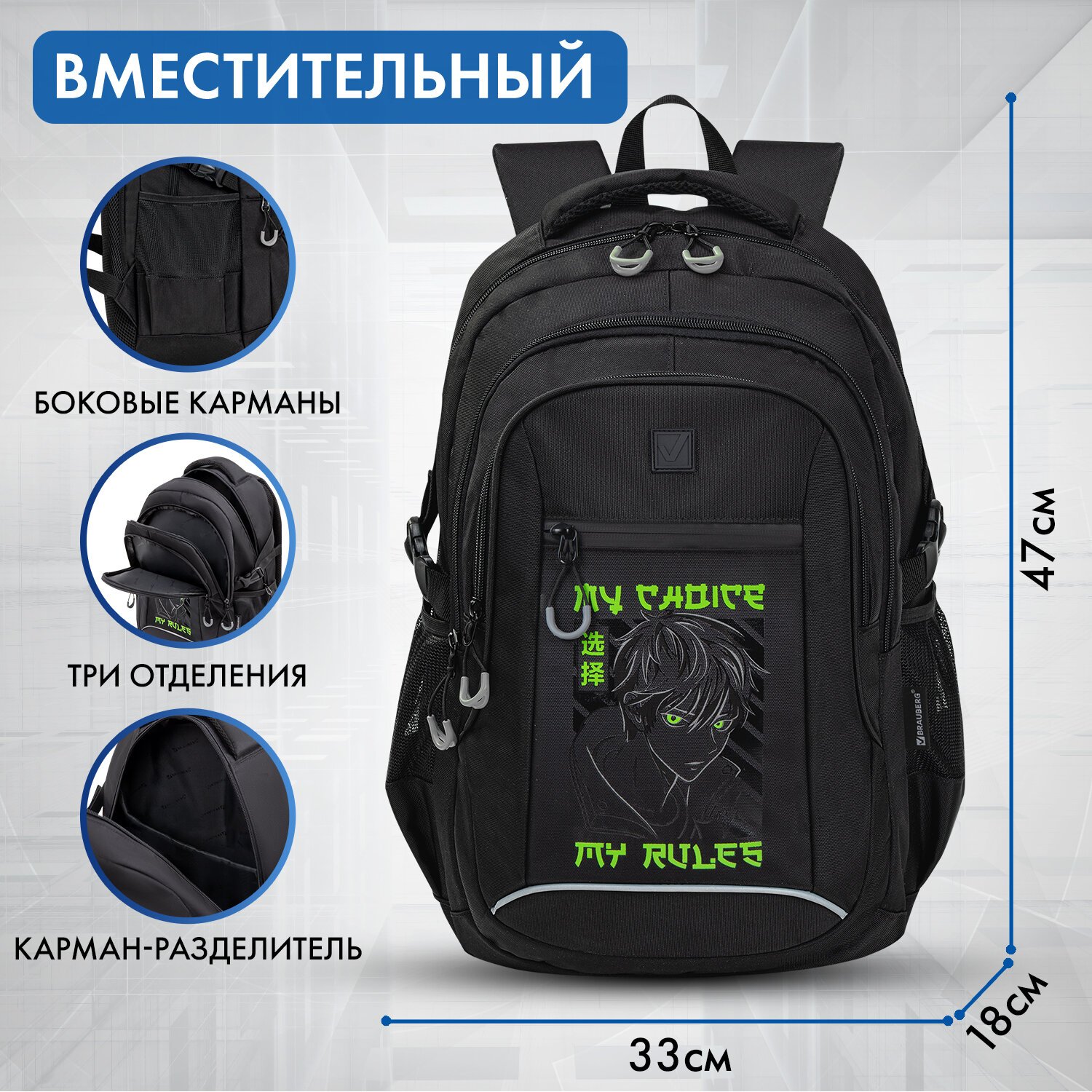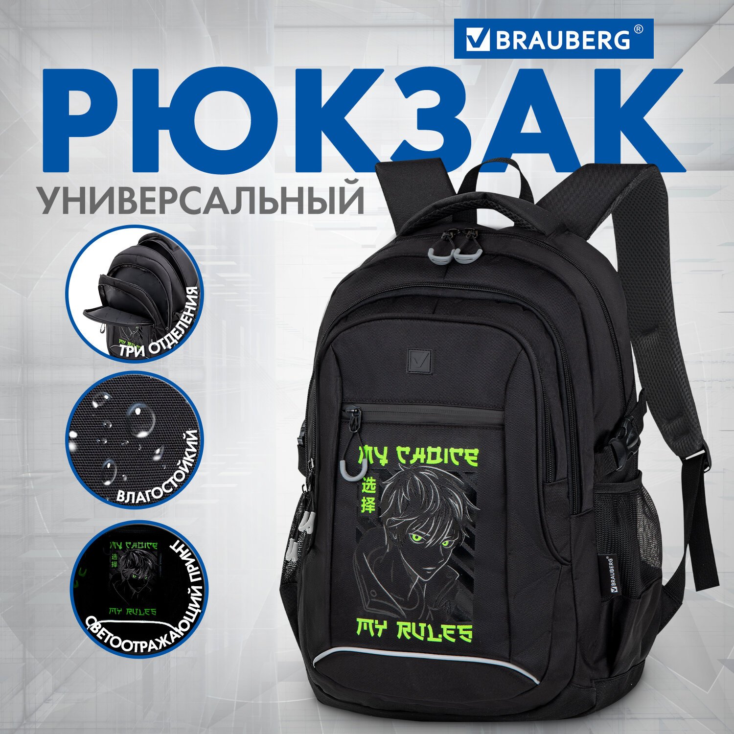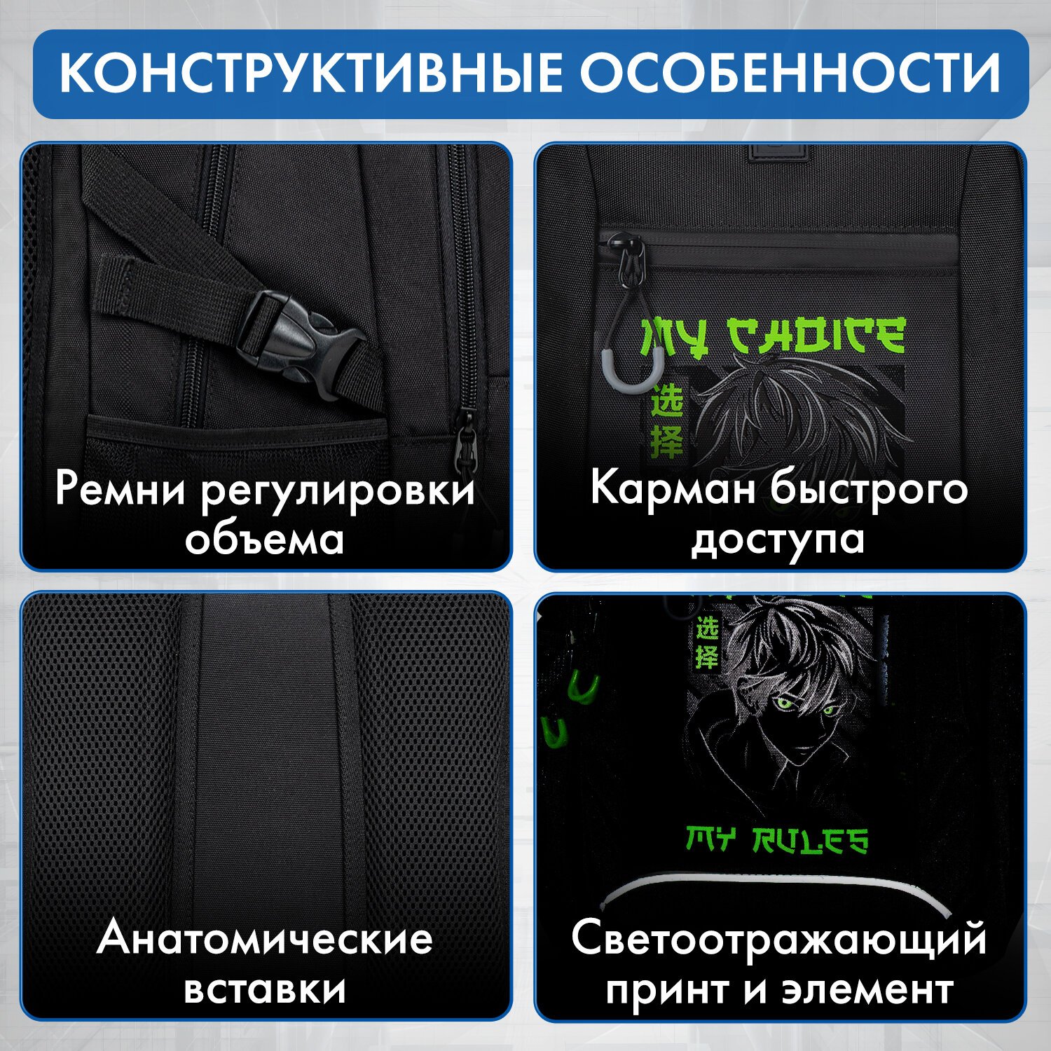 Рюкзак BRAUBERG CONTENT универсальный, 3 отделения, светоотражающий принт, Anime choice, 47х33х18 см, 272566