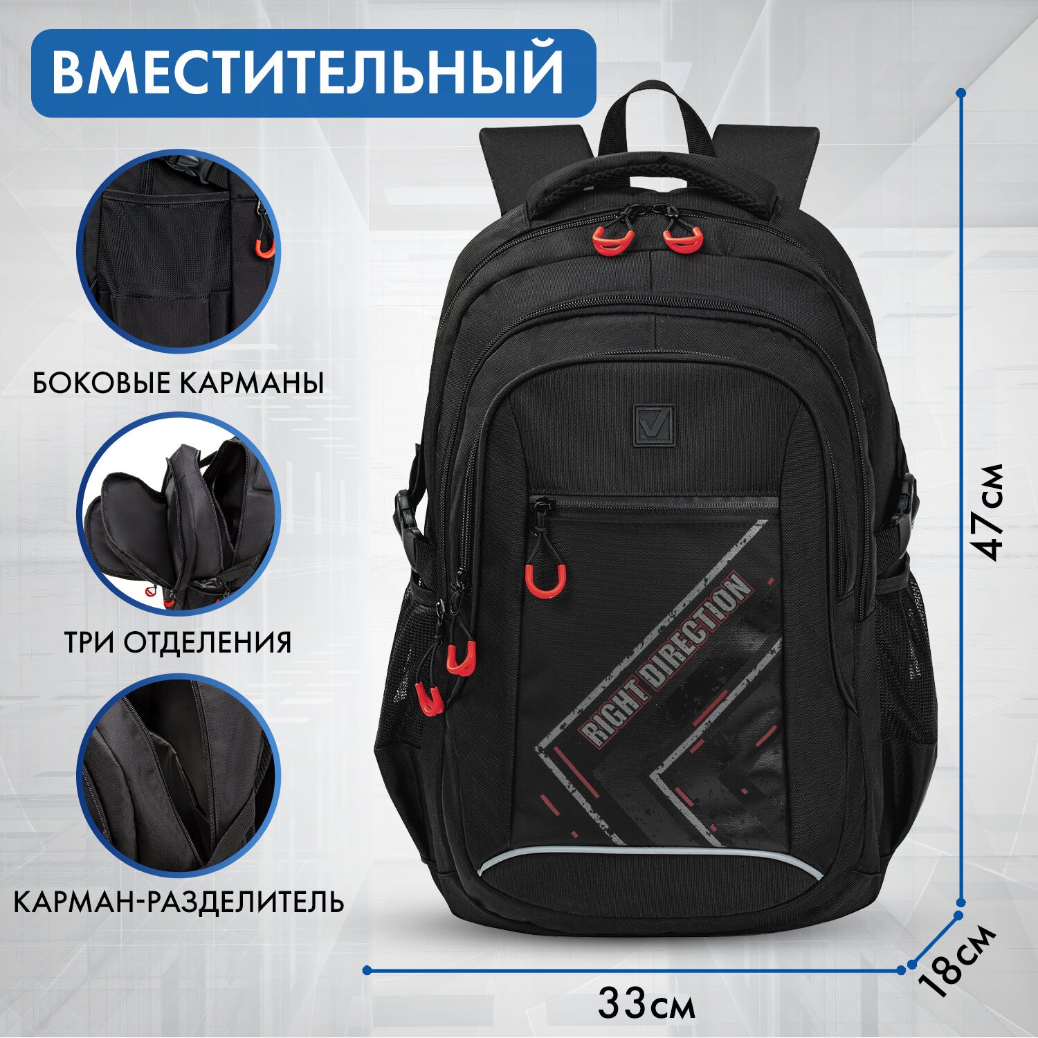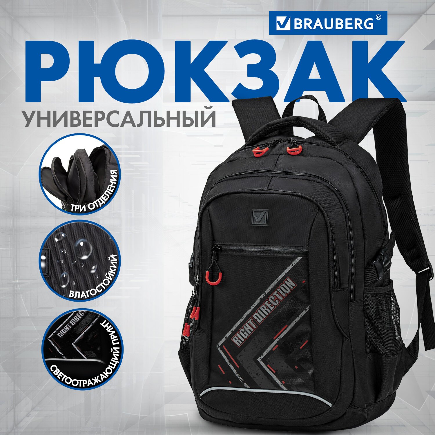 Рюкзак BRAUBERG CONTENT универсальный, 3 отделения, светоотражающий принт, "Direction", 47х33х18 см, 271653