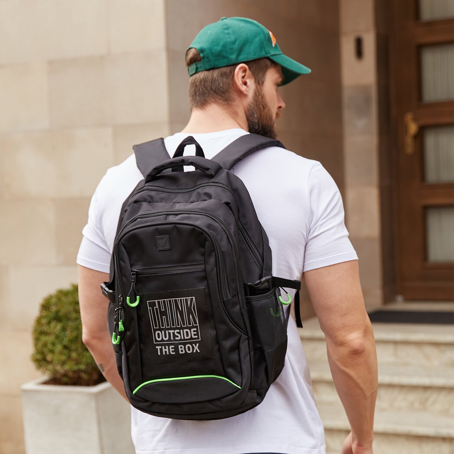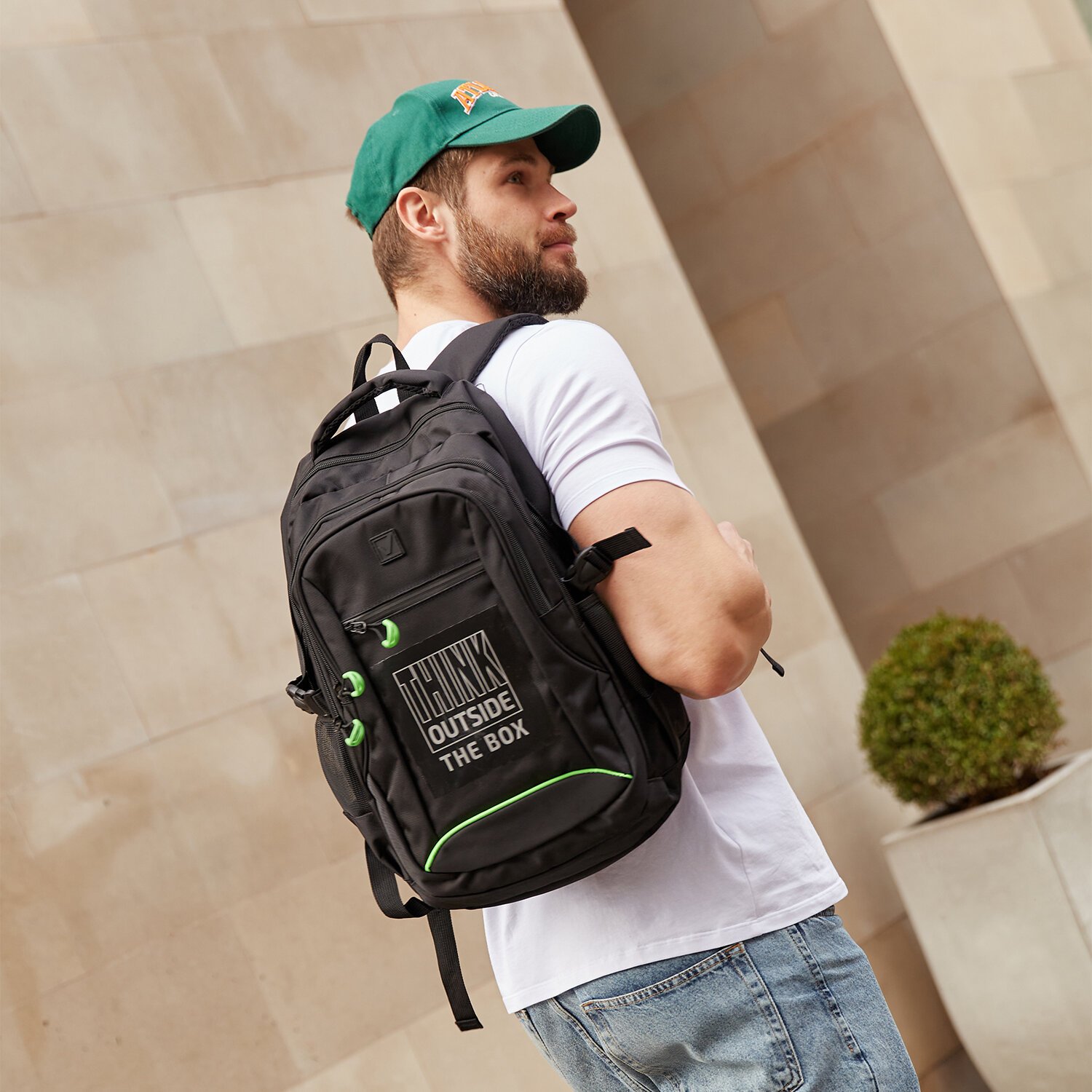 Укрепленная вентилируемая спинка рюкзака с анатомическими вставками обеспечивает удобное прилегание к спине, способствуя равномерному распределению нагрузки, делая эту модель комфортной и безопасной для ежедневного использования.