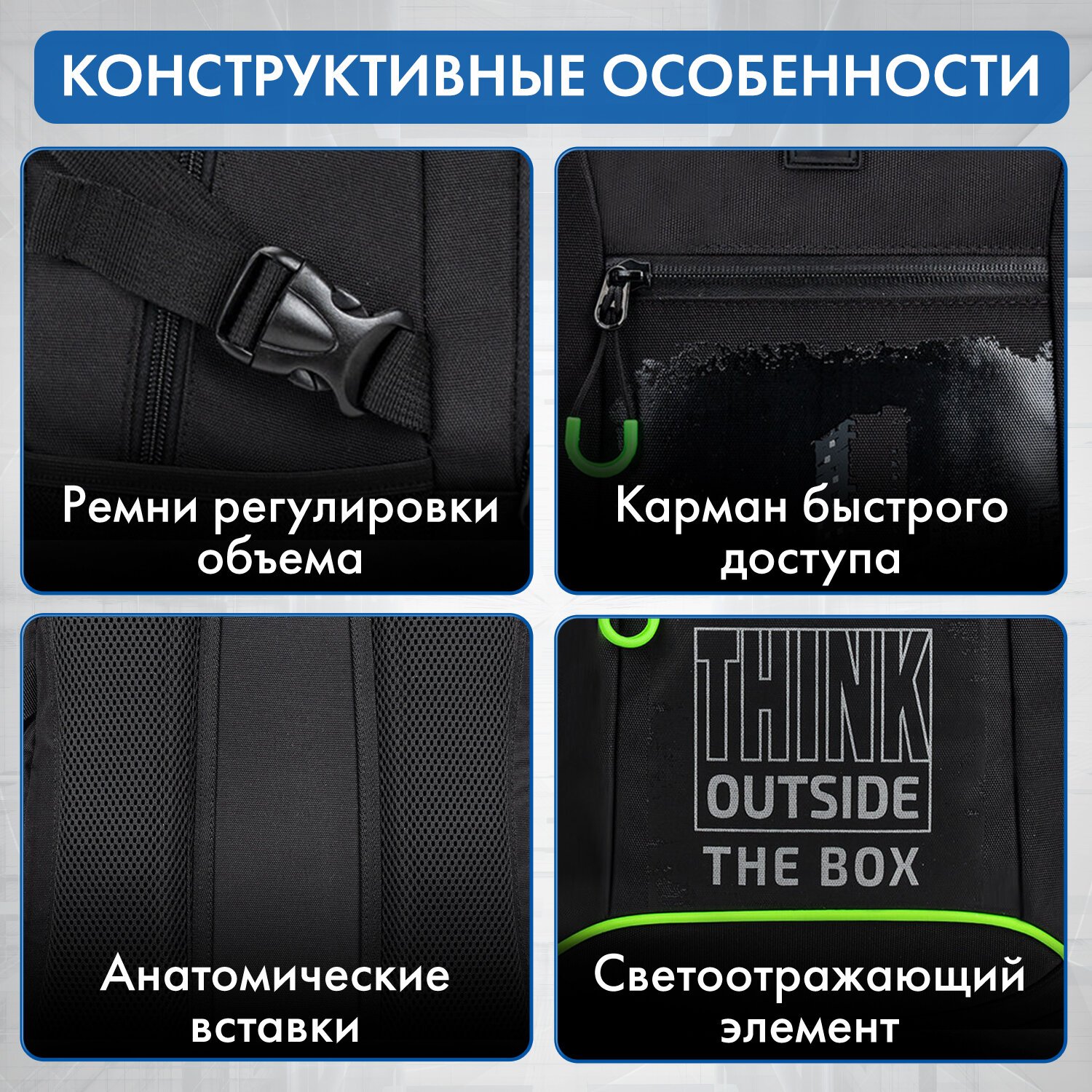 Рюкзак BRAUBERG CONTENT универсальный, 3 отделения, светоотражающий принт, "Think", 47х33х18 см, 270764