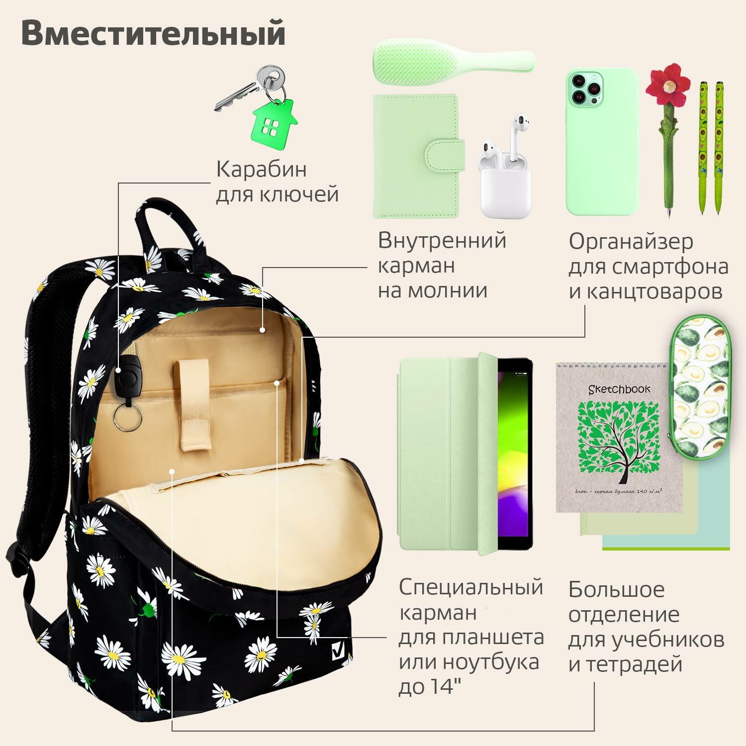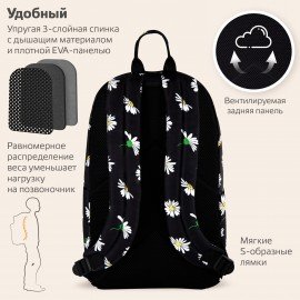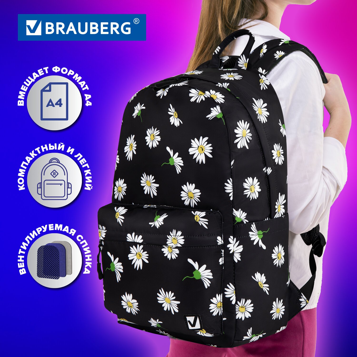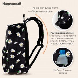 Рюкзак BRAUBERG DREAM универсальный с карманом для ноутбука, эргономичный, "Camomile", 42х26х14 см, 270773