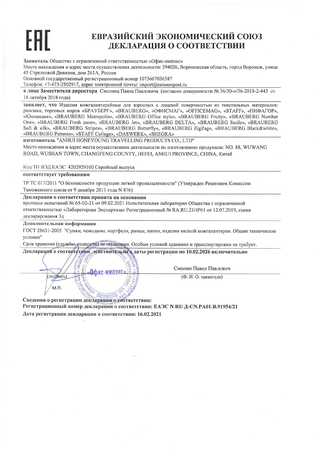 Рюкзак упакован в плотный ПЭТ-пакет, который сохранит качество и товарный вид при хранении и транспортировке.