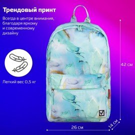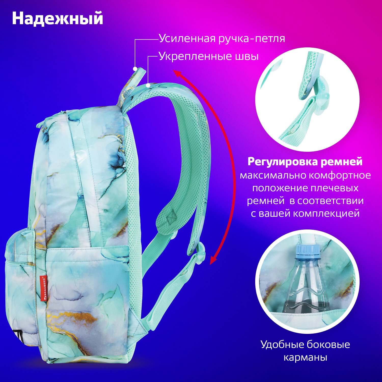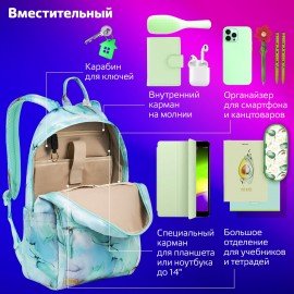 Рюкзак BRAUBERG DREAM универсальный с карманом для ноутбука, эргономичный, "Mint marble", 42х26х14 см, 271676