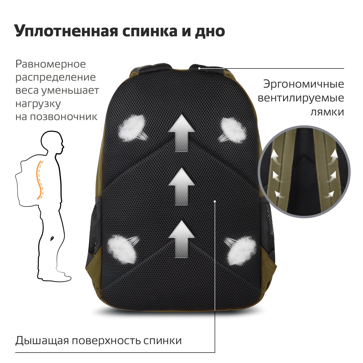 Рюкзак BRAUBERG DYNAMIC универсальный, эргономичный, хаки, 43х30х13 см, 270804