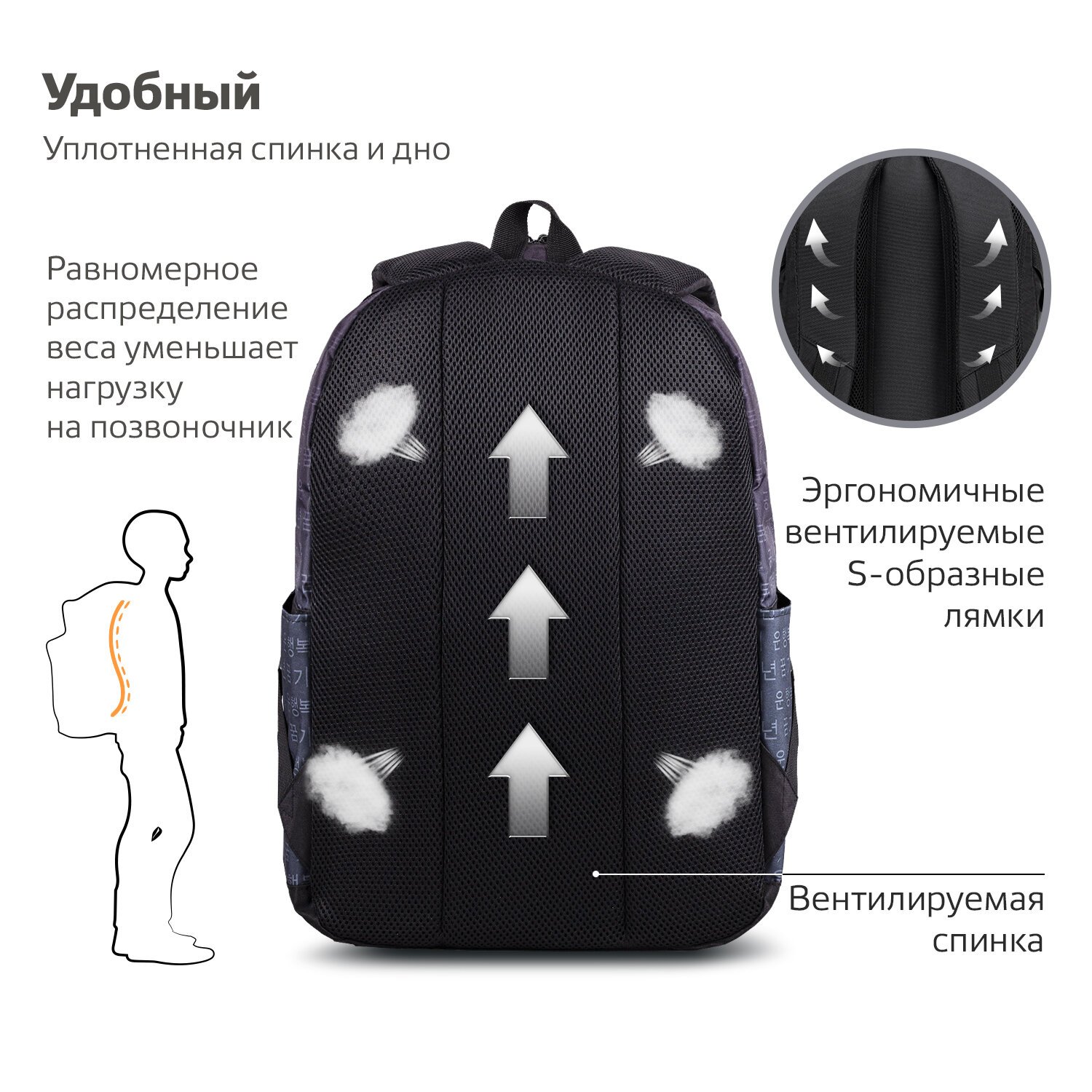 Рюкзак BRAUBERG ENERGETIC универсальный, эргономичный, "Recycle", черный\серый, 43х30х16 см, 270796