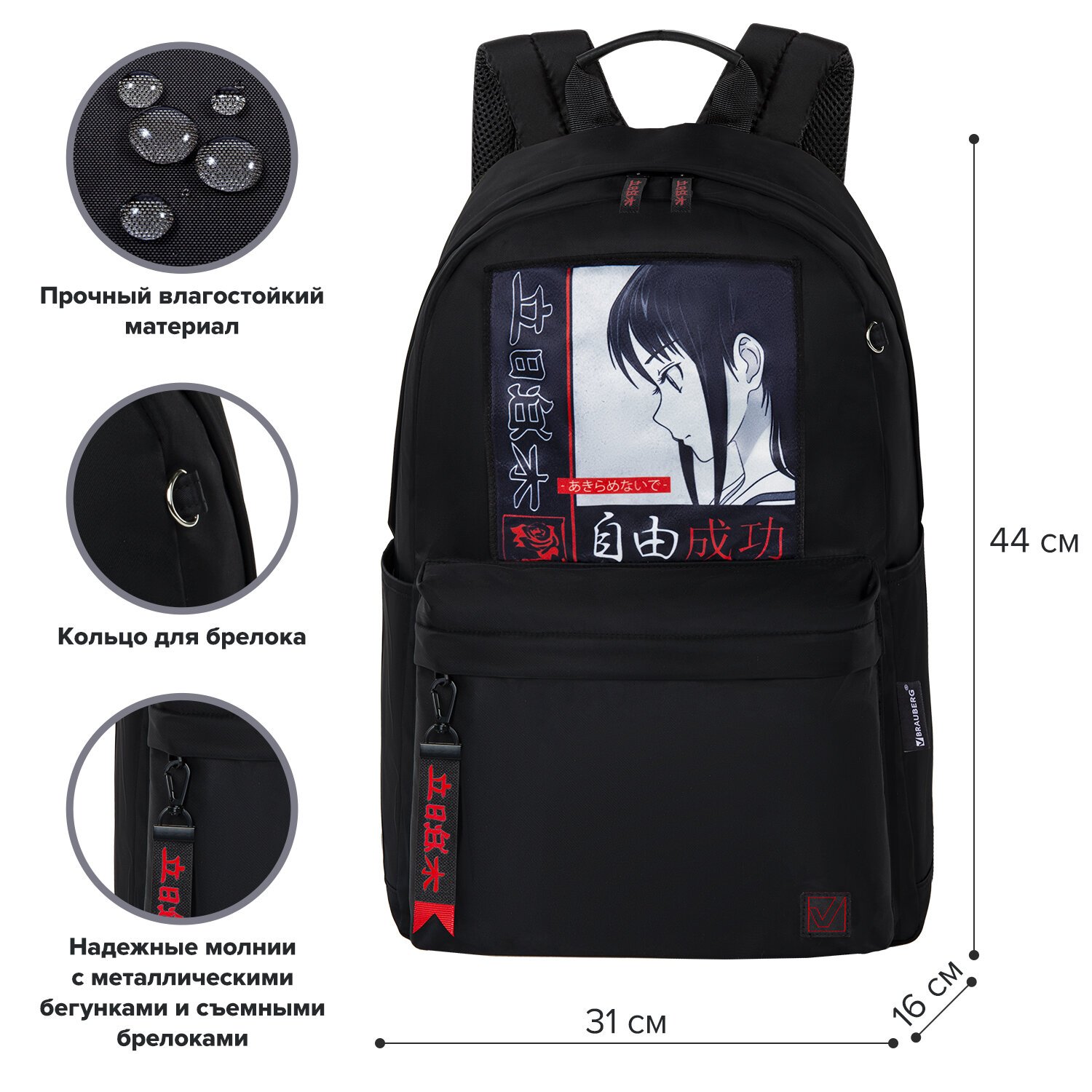 Рюкзак BRAUBERG FASHION CITY выполнен в стильном дизайне аниме: комбинация черного цвета и запоминающегося принта в сочетании с трендовыми бегунками соответствует последним модным тенденциям.