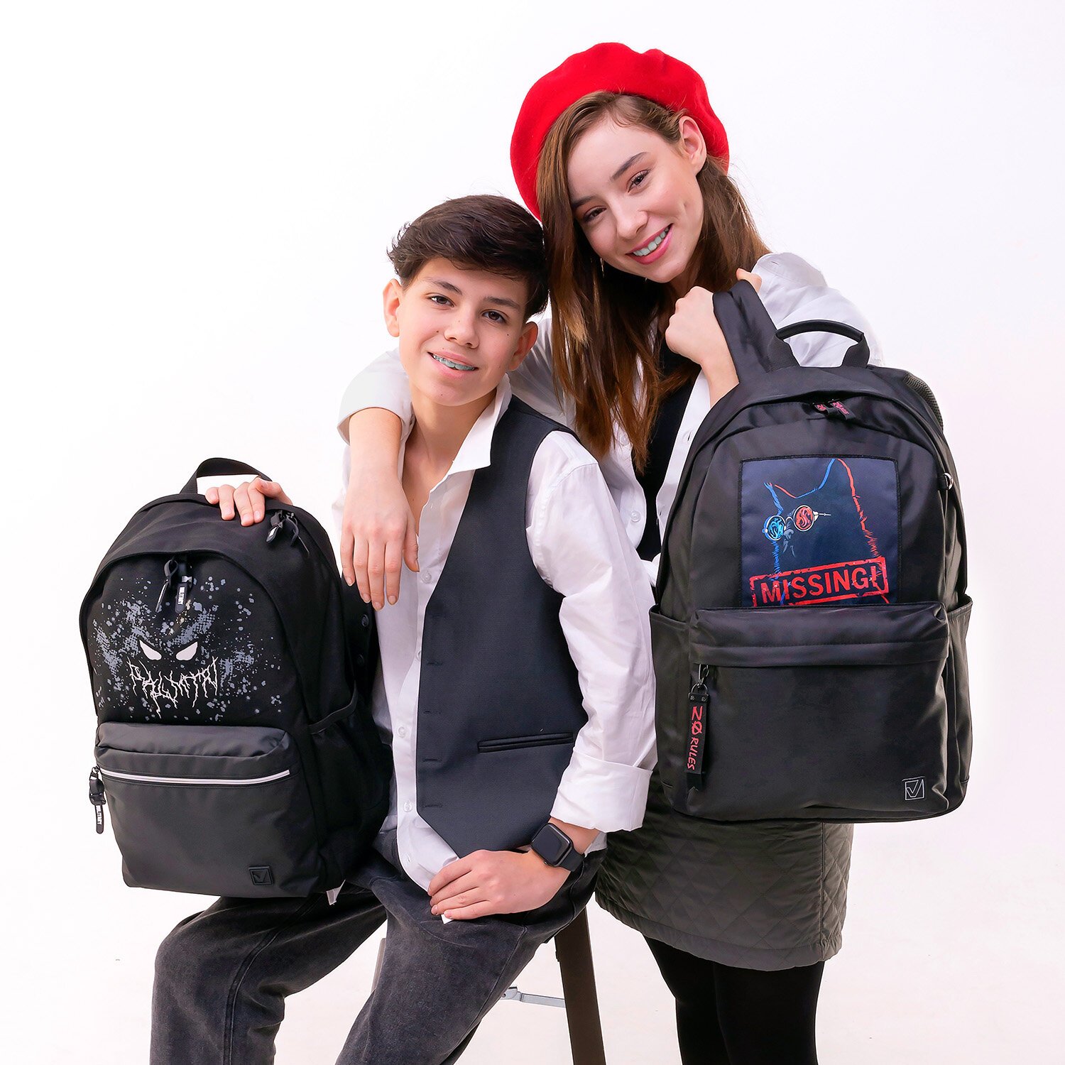 Рюкзак BRAUBERG FASHION CITY универсальный, карман-антивор, "Missing cat", черный, 44х31х16 см, 271673