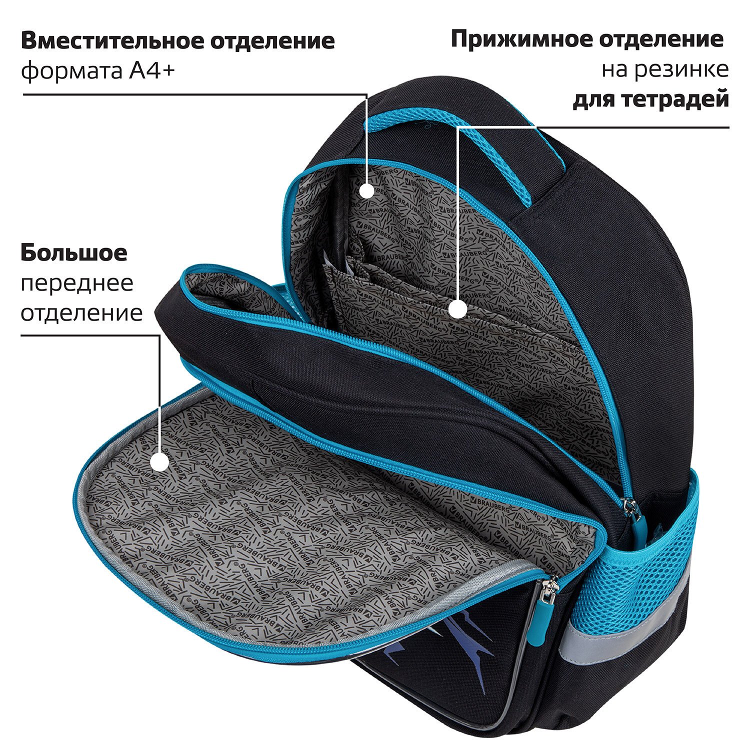 В основном отделении рюкзака можно легко и быстро разместить учебники и тетради формата А4+, а также воспользоваться прижимным отделением. Большое переднее отделение вмещает тетради и учебники формата А4, а дополнительный кармашек на молнии подойдет для хранения мелочей. Такая организация пространства поможет держать принадлежности в сохранности и приучить ребенка к порядку.