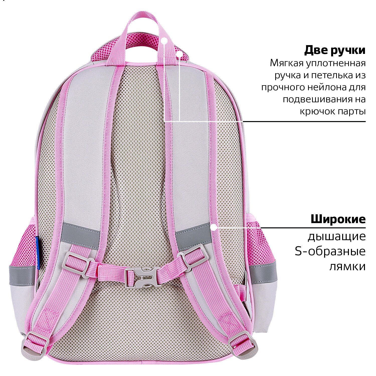 Удобная мягкая вентилируемая спинка с воздушными спонжевыми панелями разработана с учетом анатомических особенностей детей младшего и среднего школьного возраста. Рюкзак оснащен нагрудным ремешком, который снижает нагрузку на спину. В процессе эксплуатации равномерное распределение нагрузки позволит сохранить правильную осанку!