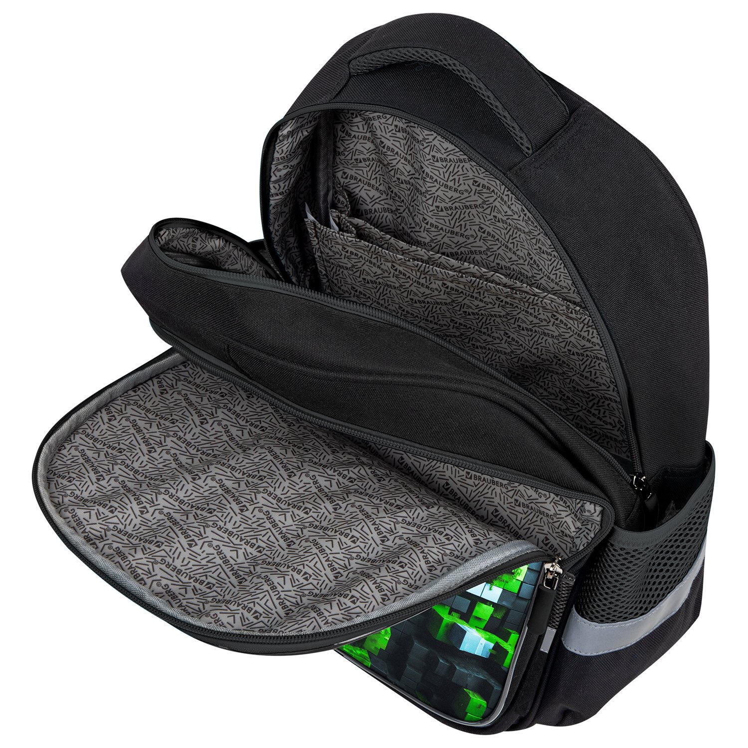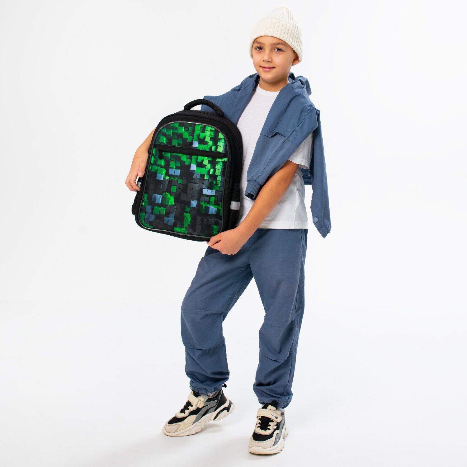 В основном отделении рюкзака можно легко и быстро разместить учебники и тетради формата А4+, а также воспользоваться прижимным отделением. Большое переднее отделение вмещает тетради и учебники формата А4, а дополнительный кармашек на молнии подойдет для хранения мелочей. Такая организация пространства поможет держать принадлежности в сохранности и приучить ребенка к порядку.