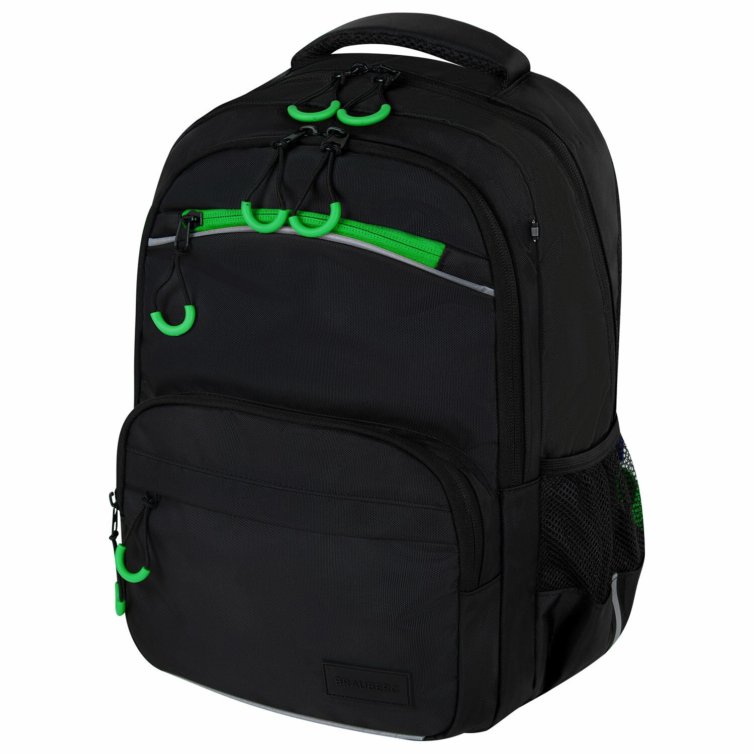 Рюкзак BRAUBERG FORCE, 2 отделения, 5 карманов, "Neon green", 39х28х17 см, 273153