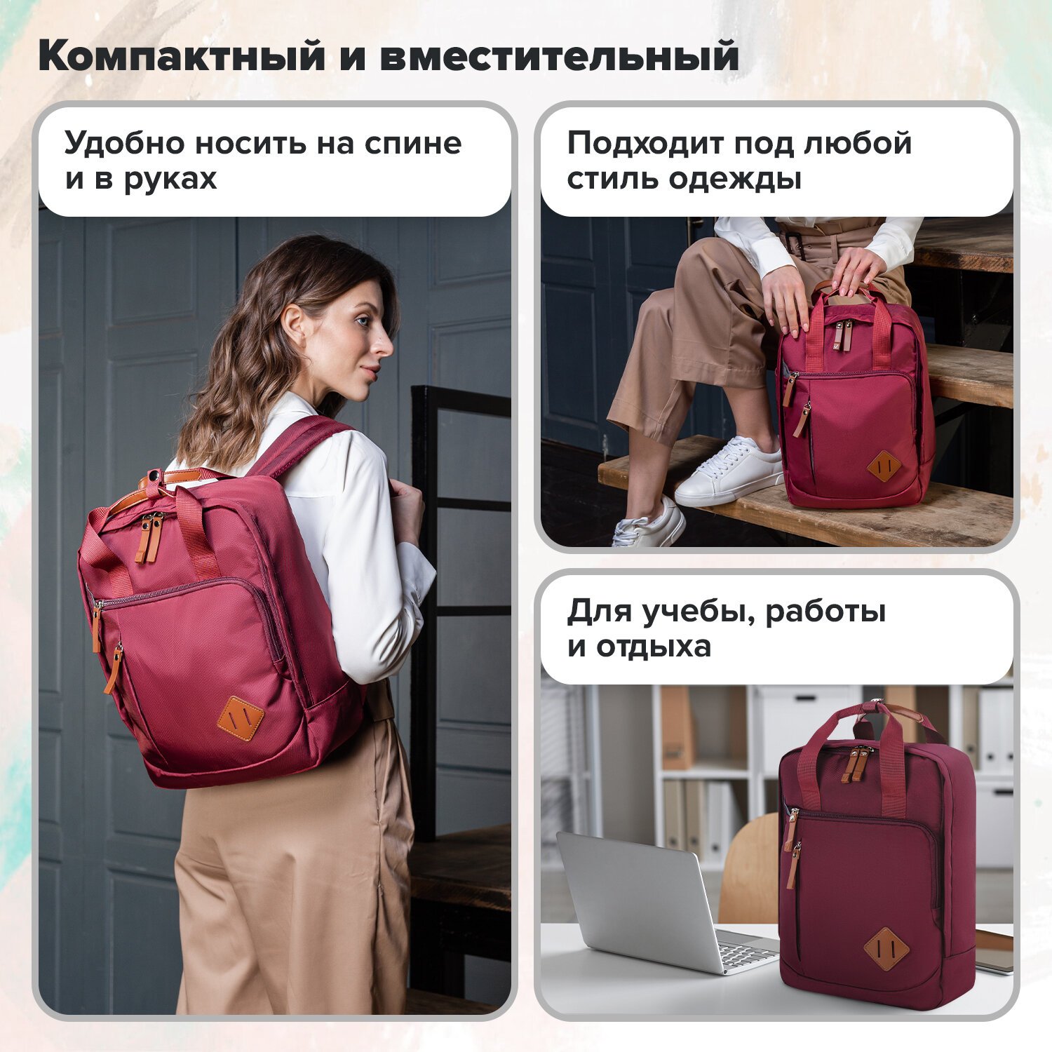 Рюкзак идеально подходит для ежедневной эксплуатации – на работу, учебу и для передвижений по городу.