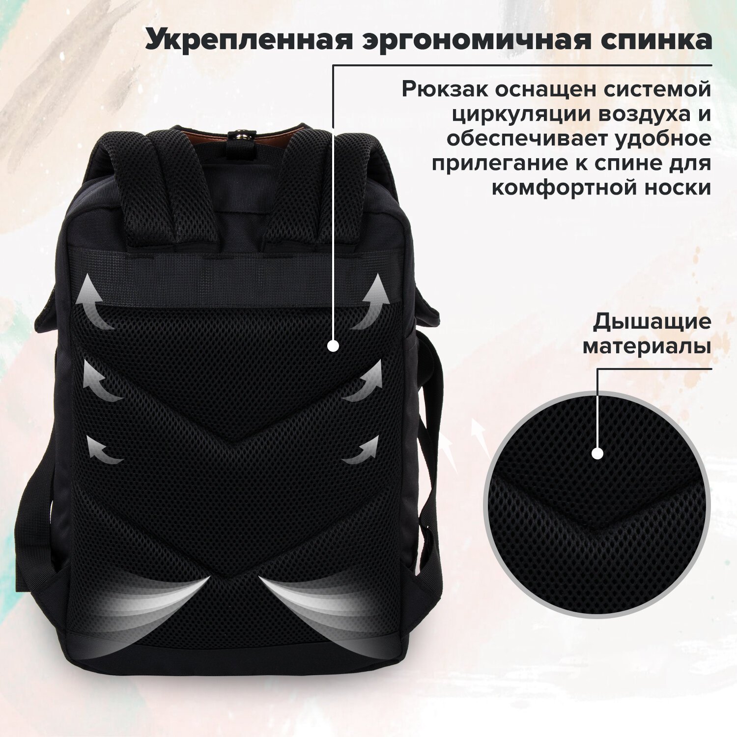 Рюкзак BRAUBERG FASHION CITY универсальный, 2 отделения, Green Spider, черный, 46х31х15 см, 273839