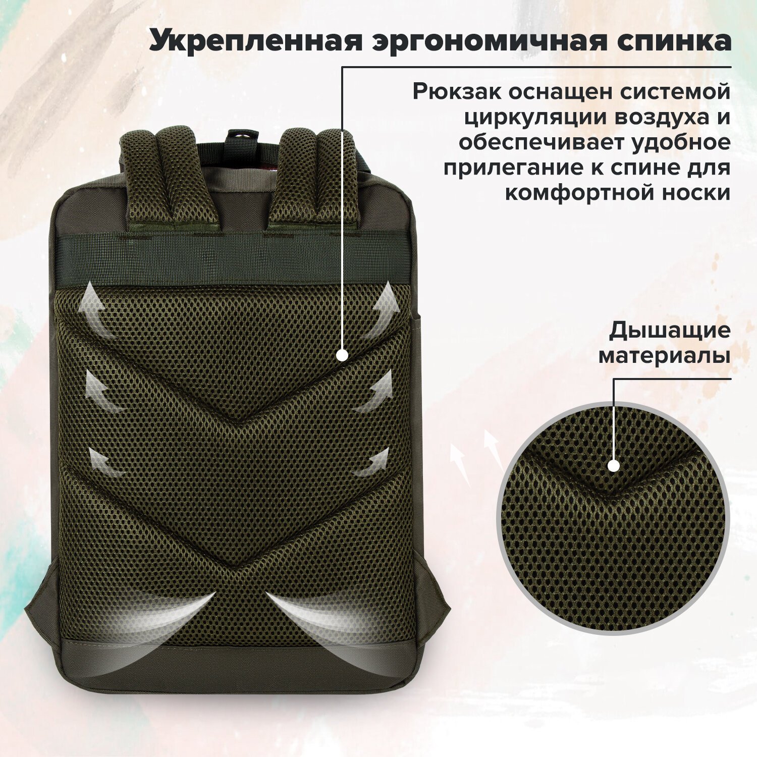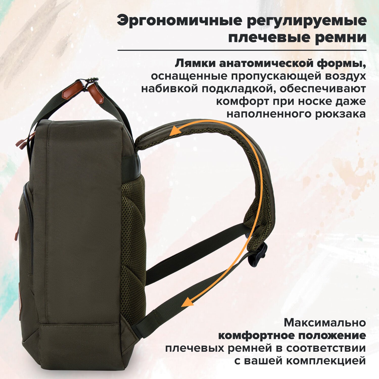 Рюкзак BRAUBERG FRIENDLY универсальный с длинными ручками, хаки, 37х26х13 см, 270091