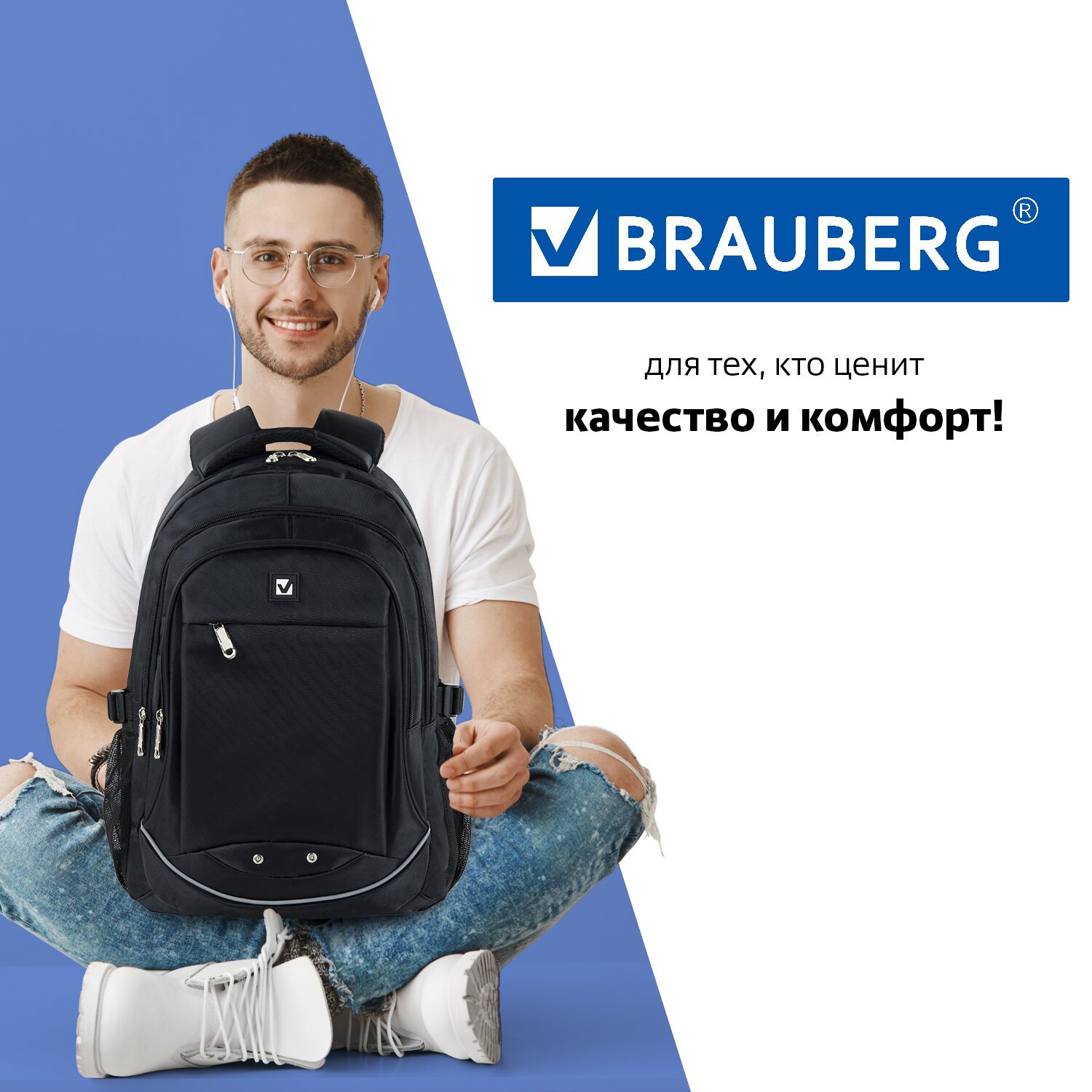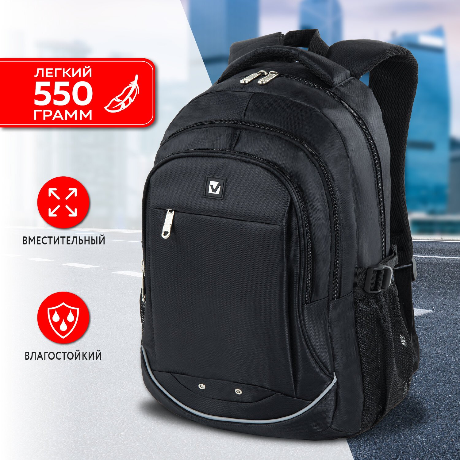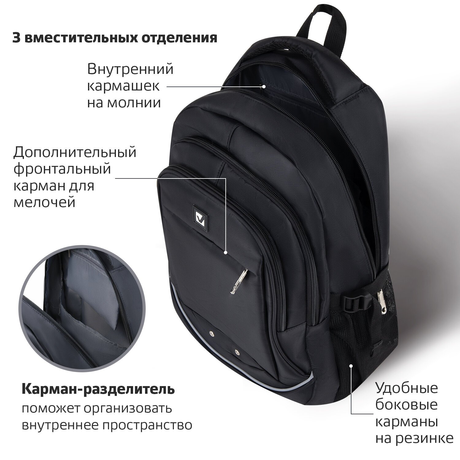 Удобный и надежный рюкзак BRAUBERG имеет оптимальную функциональную организацию - три вместительных отделения, боковые карманы и наружный карман для быстрого доступа к необходимым вещам.