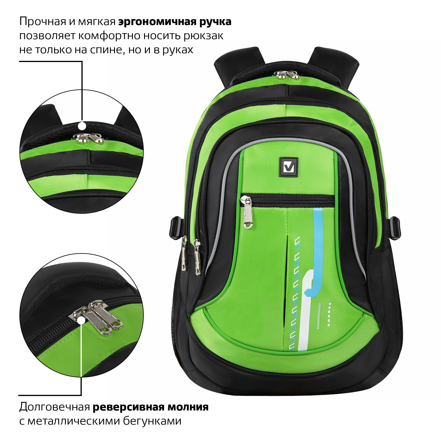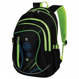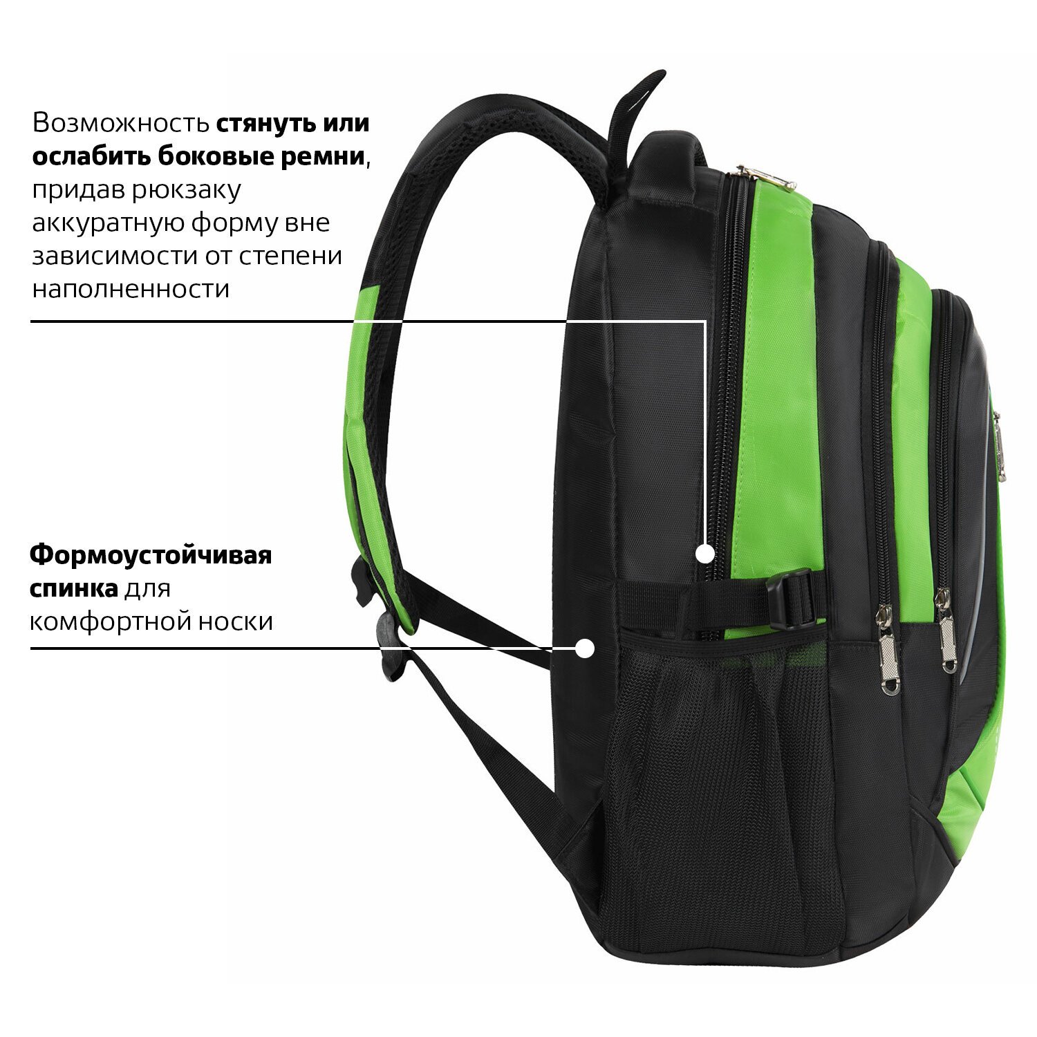 Рюкзак BRAUBERG HIGH SCHOOL универсальный, 3 отделения, "Лайм", черный/салатовый, 46х31х18 см, 225524