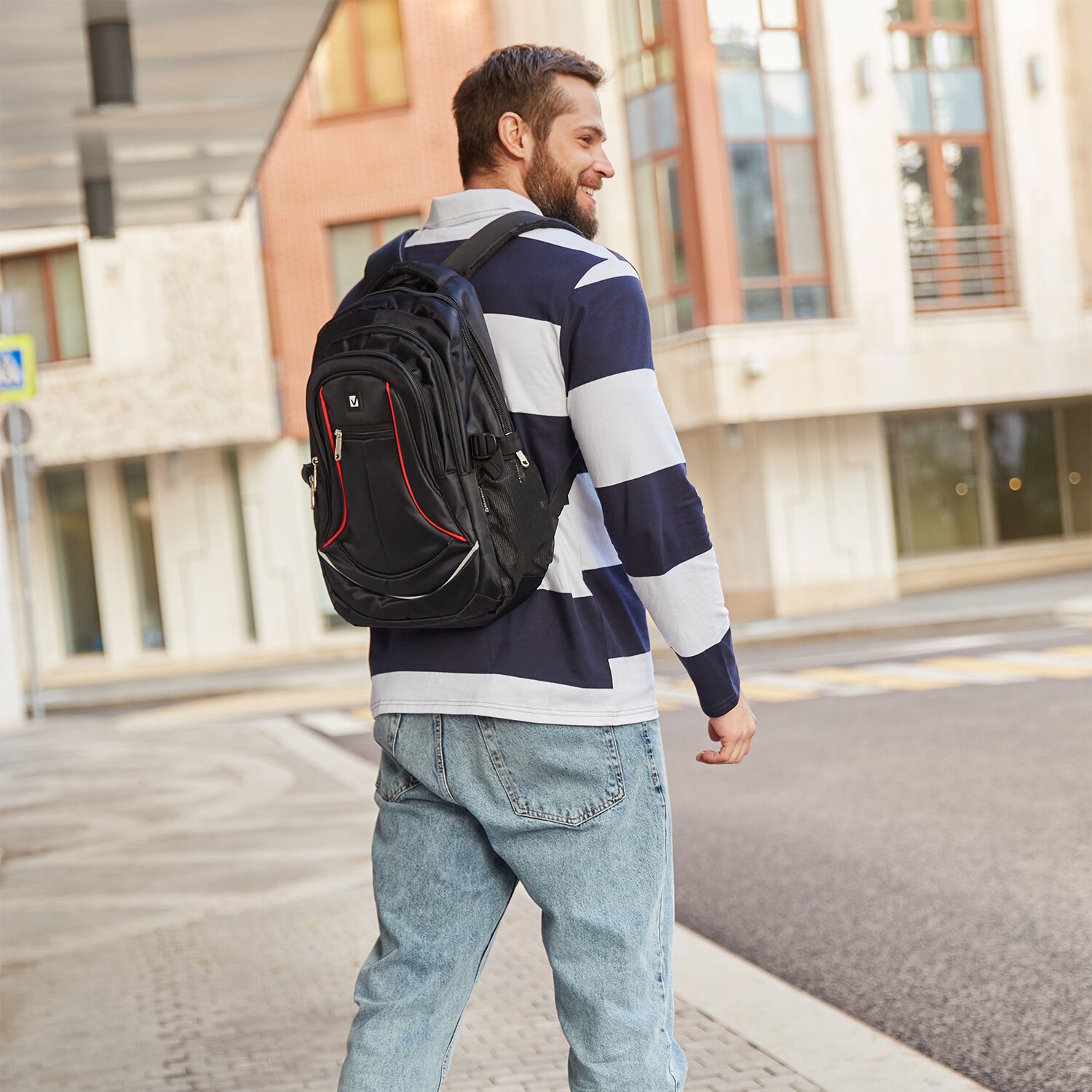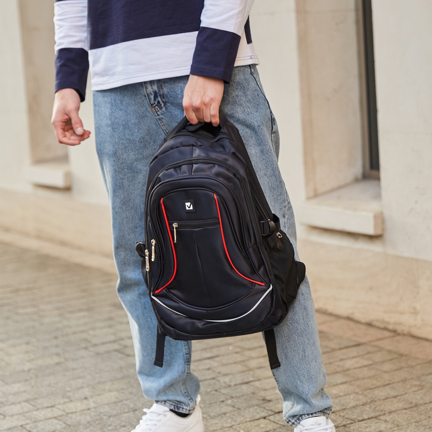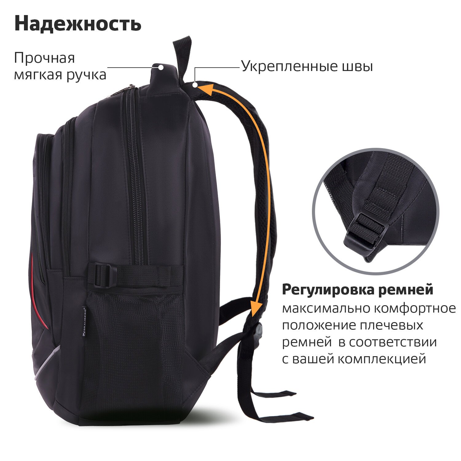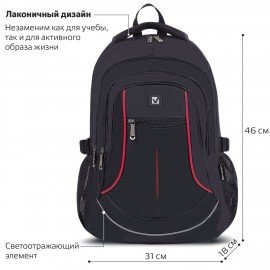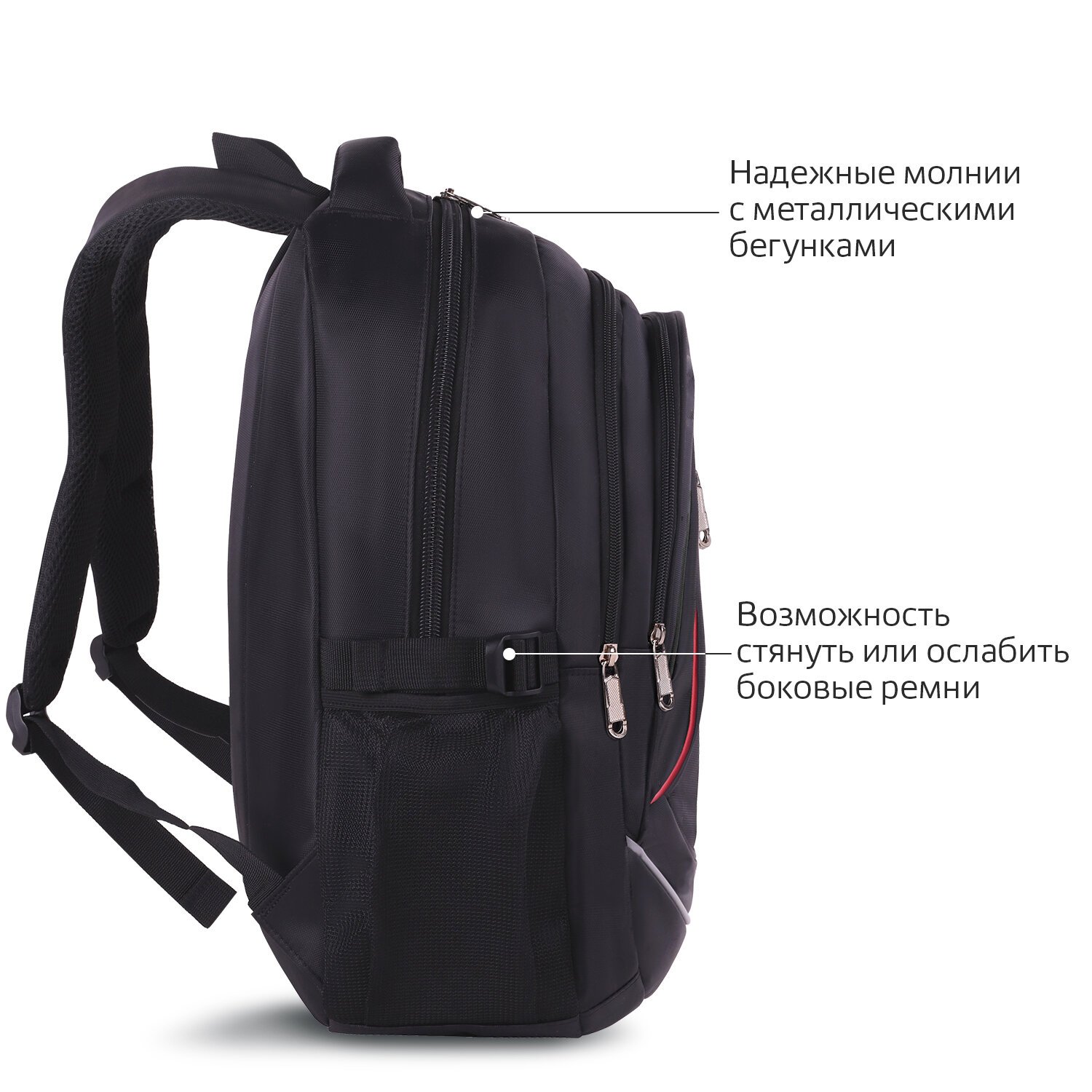 Рюкзак BRAUBERG HIGH SCHOOL универсальный, 3 отделения, "Легенда", черный/красный, 46х31х18 см, 271651