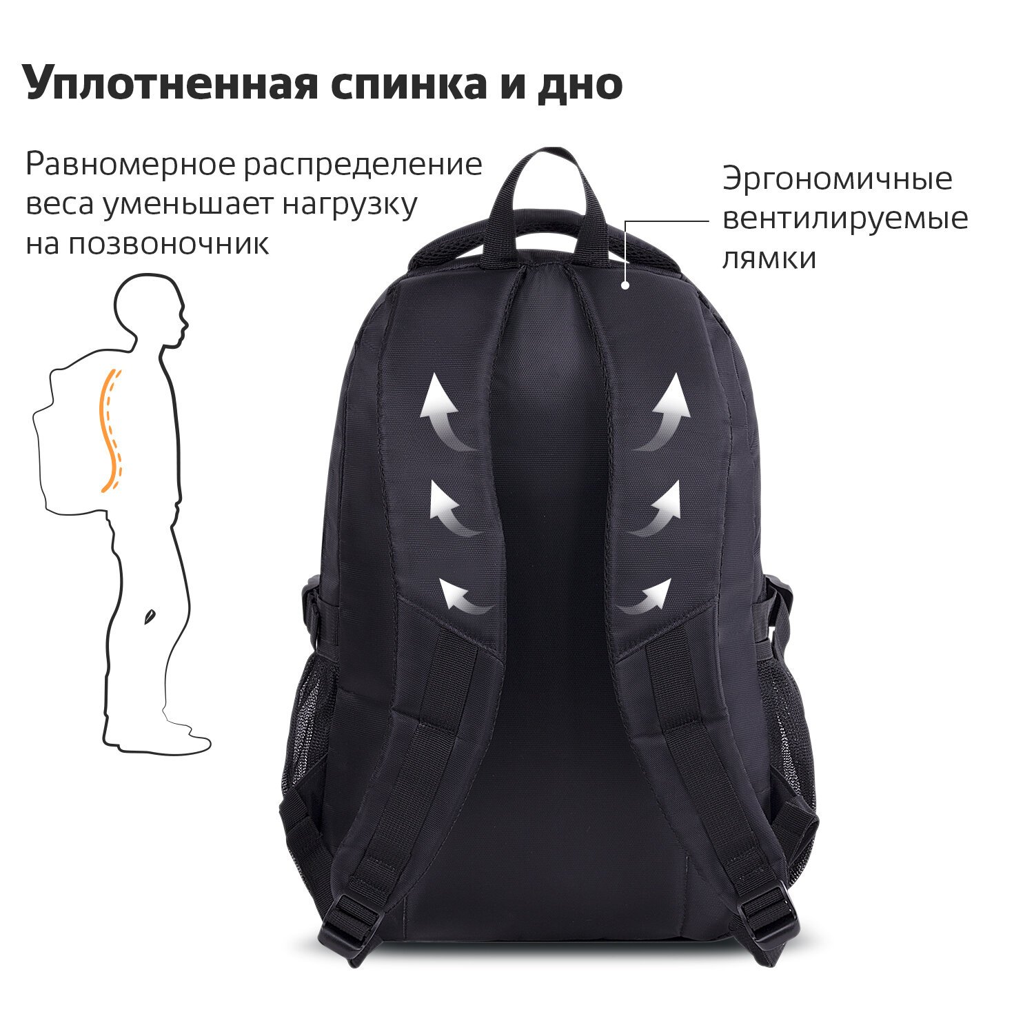 Удобный и надежный рюкзак BRAUBERG имеет оптимальную функциональную организацию – 3 вместительных отделения, боковые карманы и наружный карман для быстрого доступа к необходимым вещам.