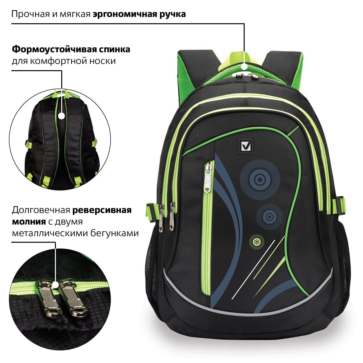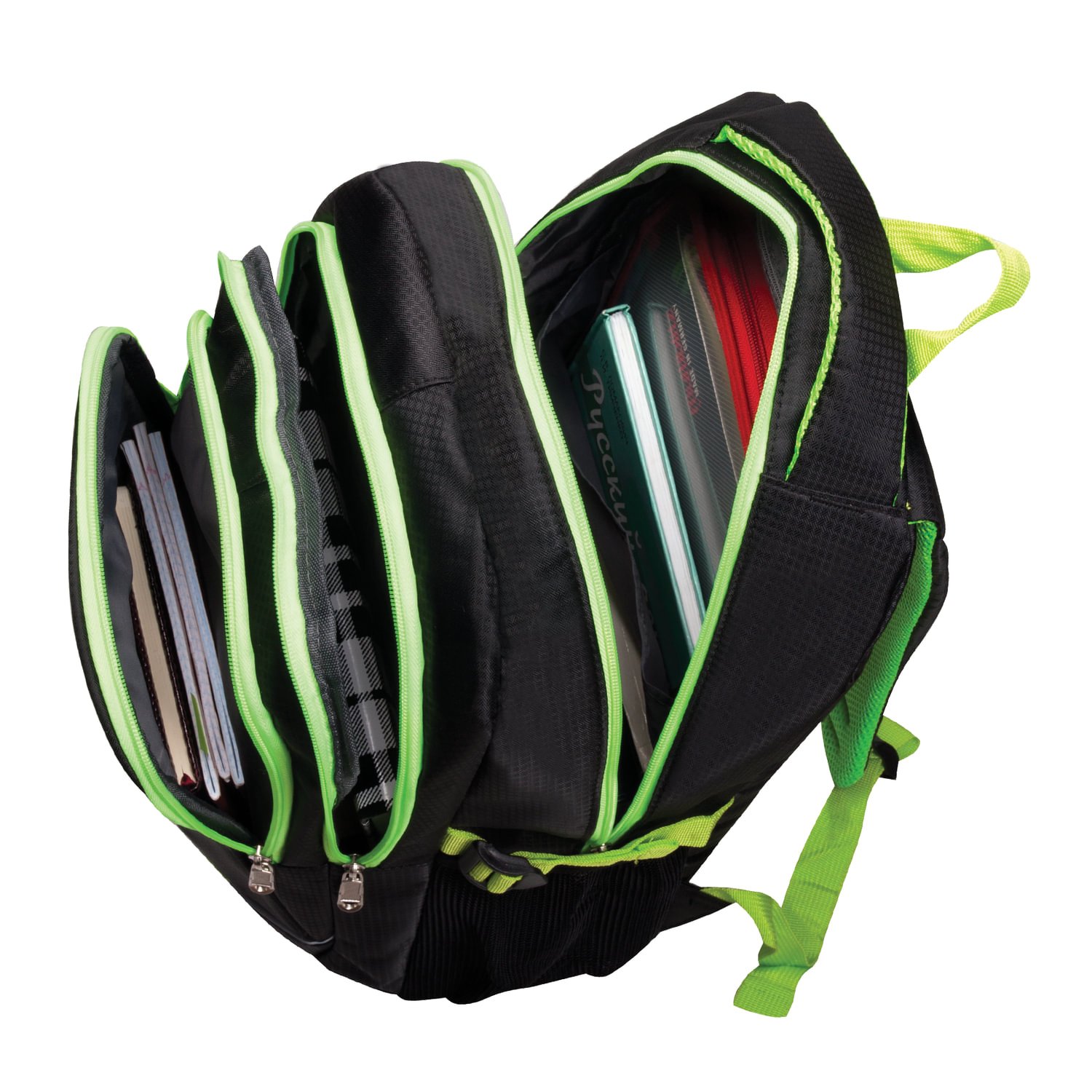 Рюкзак BRAUBERG HIGH SCHOOL универсальный, 3 отделения, "Неон", черный/салатовый, 46х31х18 см, 225520
