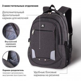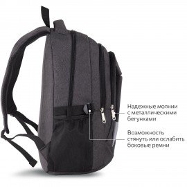 Удобный и надежный рюкзак BRAUBERG имеет оптимальную функциональную организацию - три вместительных отделения, боковые карманы и наружный карман для быстрого доступа к необходимым вещам.