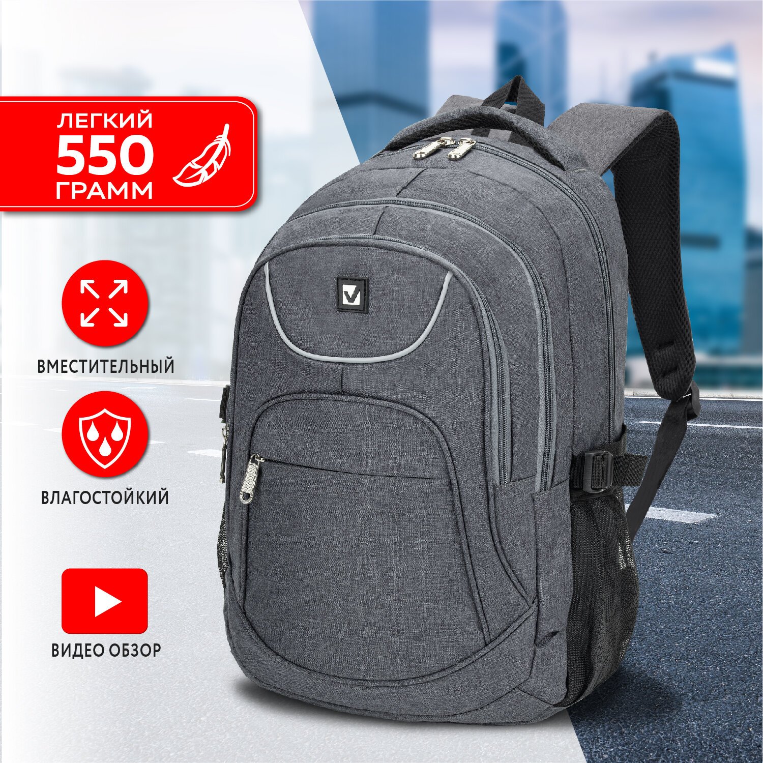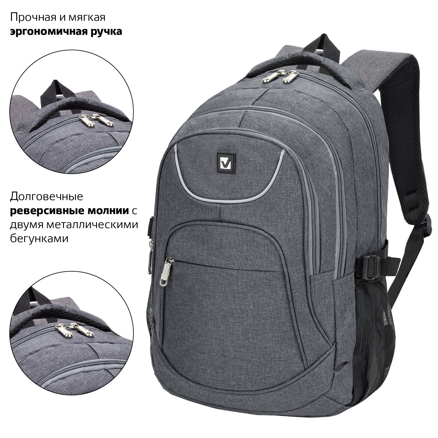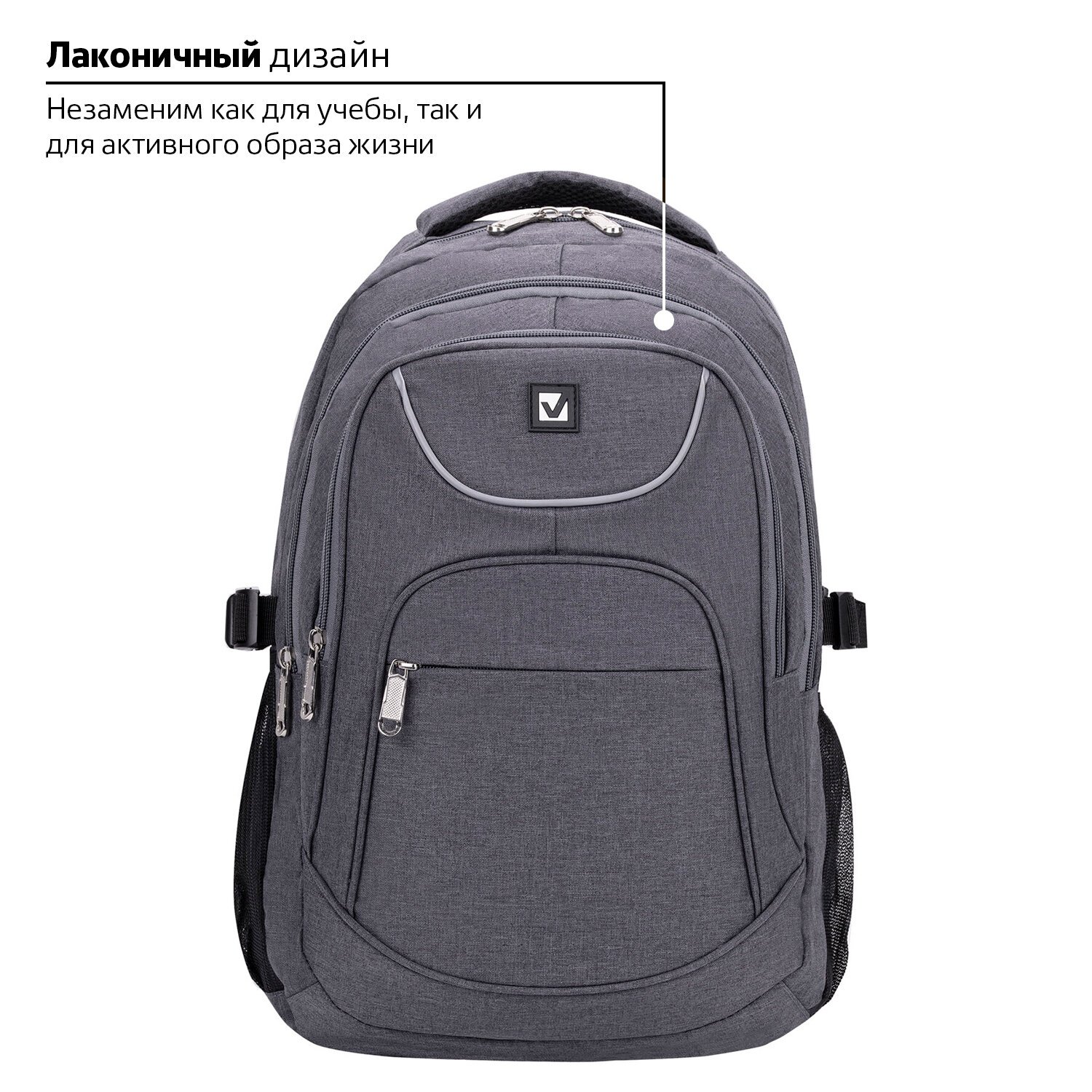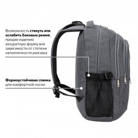 Удобный и надежный рюкзак BRAUBERG имеет оптимальную функциональную организацию – 3 вместительных отделения, боковые карманы и наружный карман для быстрого доступа к необходимым вещам.