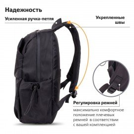 Плотная спинка рюкзака обеспечивает удобное прилегание к спине, способствуя равномерному распределению нагрузки, делая эту модель комфортной и безопасной для ежедневного использования.