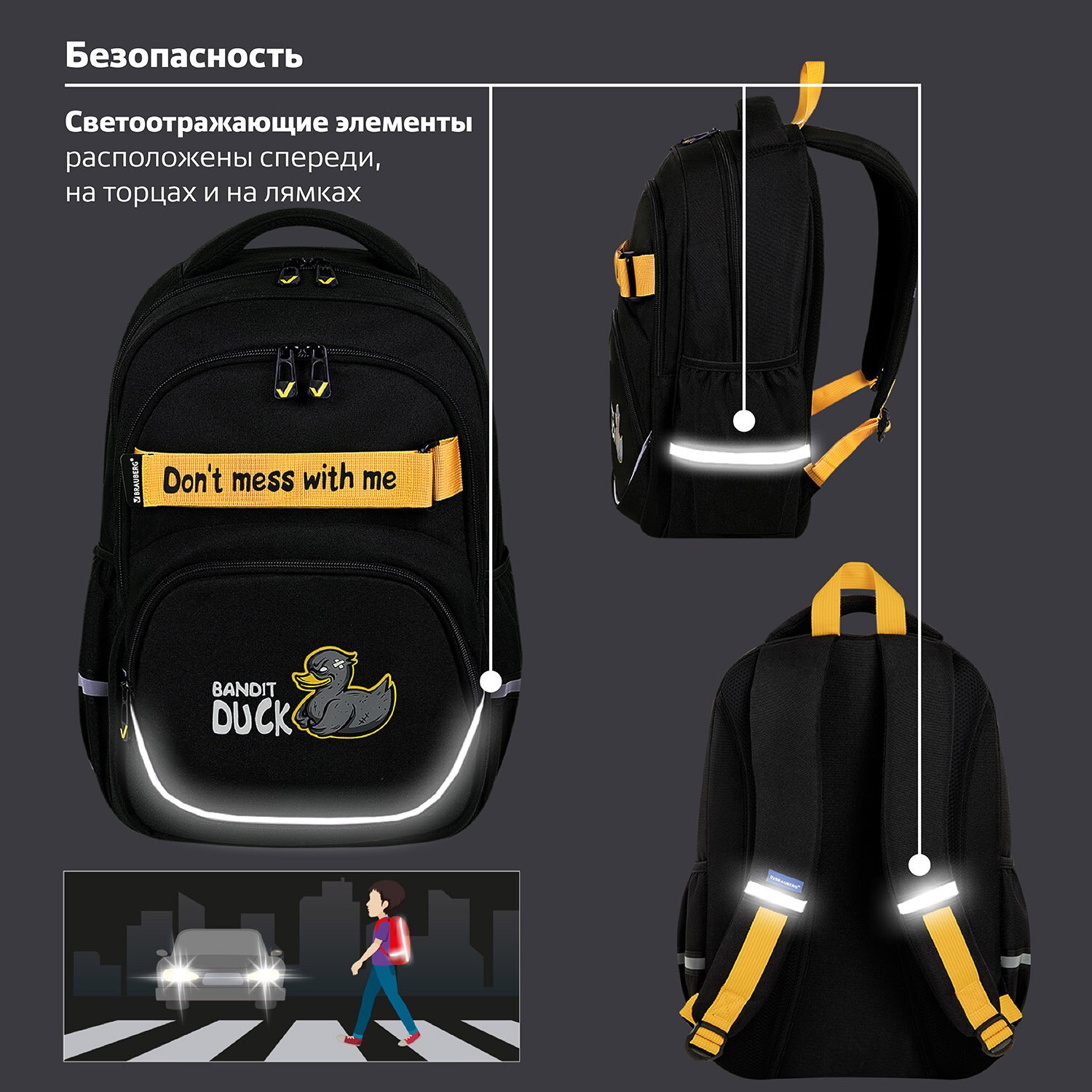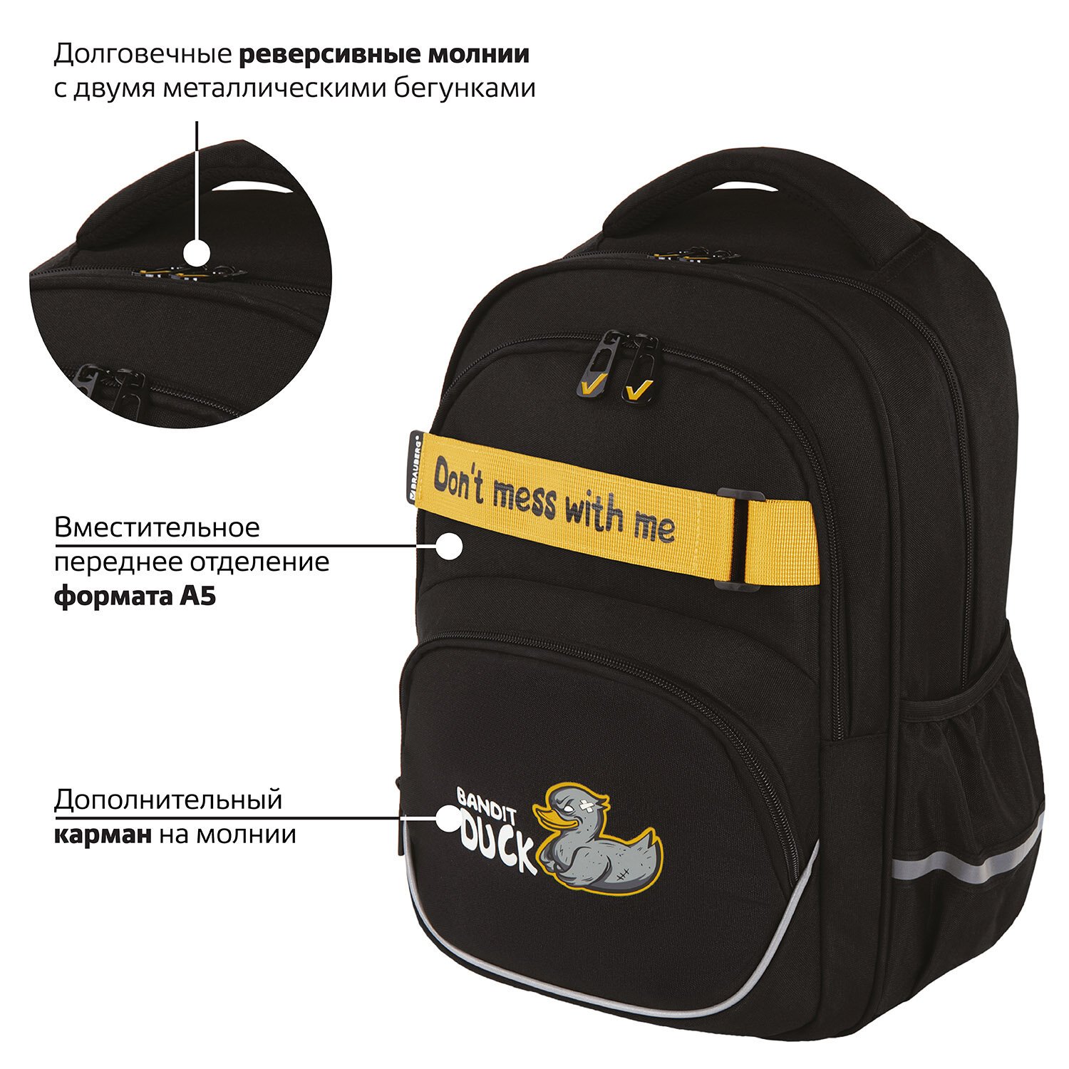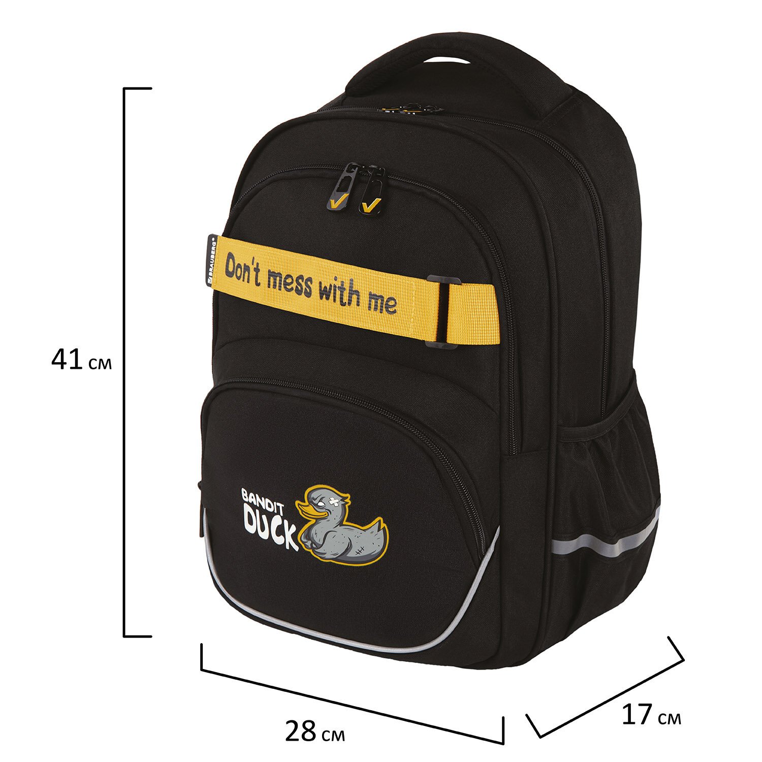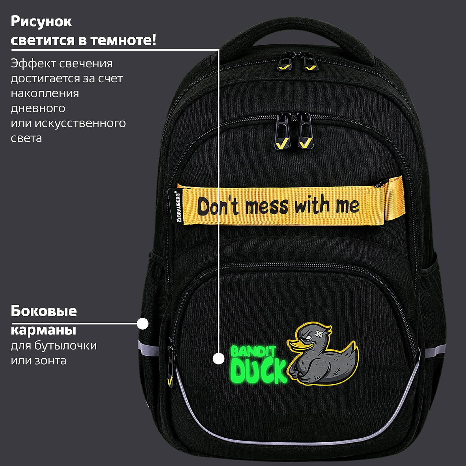 Рюкзак BRAUBERG MOTION, 2 отделения, 3 кармана, "Angry duck", СВЕТЯЩИЙСЯ, 41х28х17 см, 272031