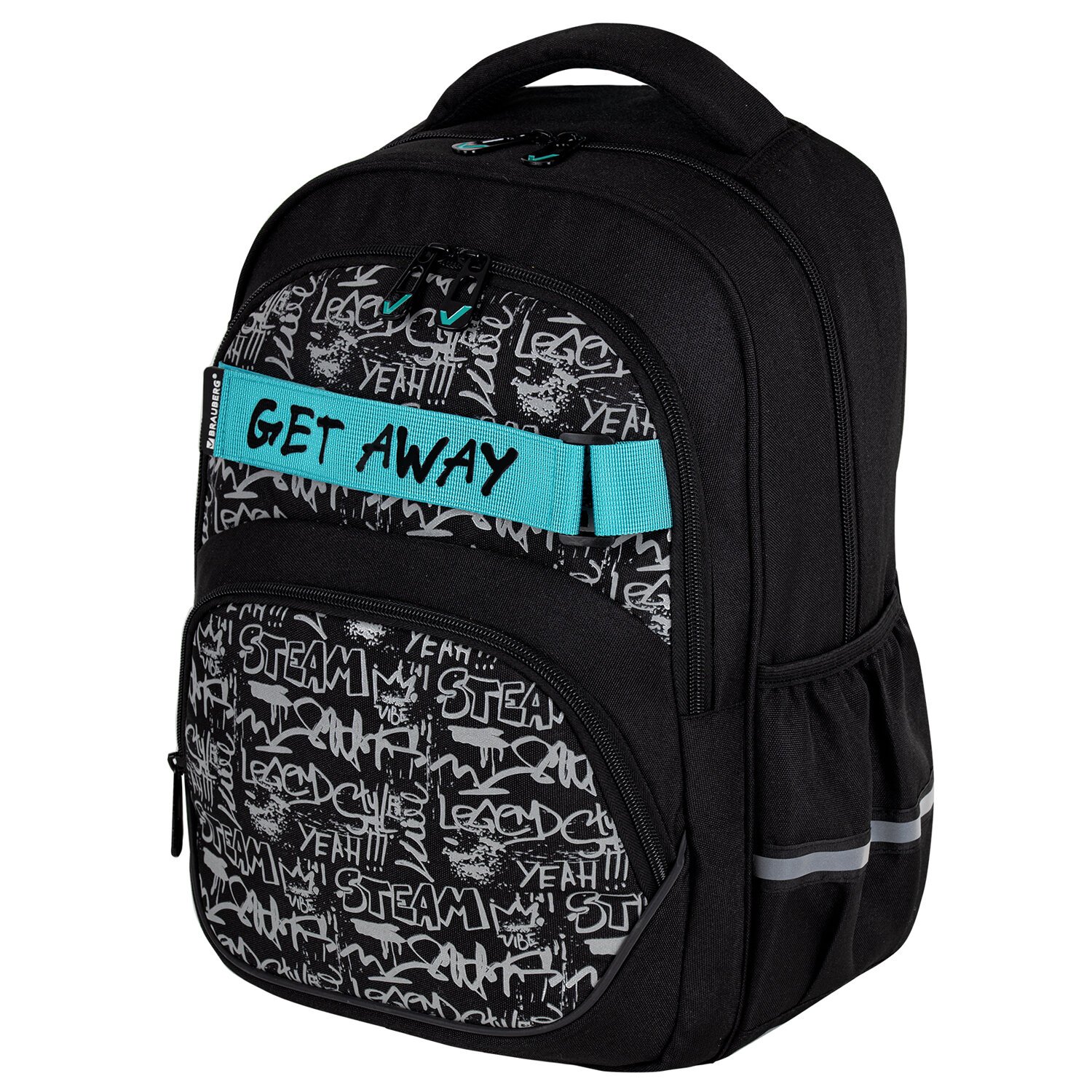 Рюкзак BRAUBERG MOTION, 2 отделения, 3 кармана, "Get away", СВЕТООТРАЖАЮЩИЙ ПРИНТ, 41х28х17 см, 273117