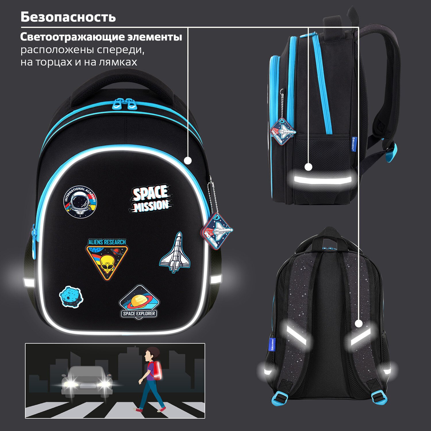В основном отделении рюкзака можно легко и быстро разместить учебники и тетради формата А4+, воспользоваться дополнительным карманом. Также в основном отделении находится именная карточка школьника. Фронтальное отделение вмещает тетради и учебники формата А5, внутри находится органайзер для канцтоваров, карман для телефона и отделение из сетки на молнии. Такая организация пространства поможет держать принадлежности в сохранности и приучить ребенка к порядку.