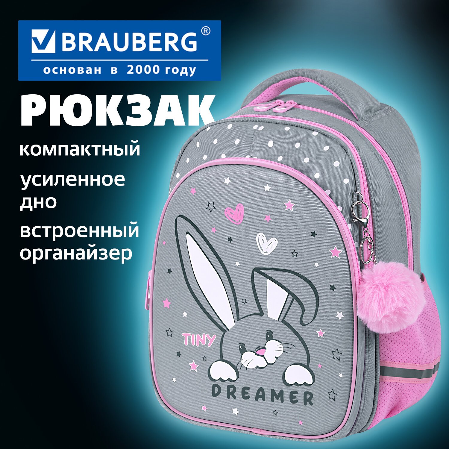 Рюкзак BRAUBERG OPTIMA, 2 отделения, с брелоком, "Curious bunny", 36х27х18 см, 272098