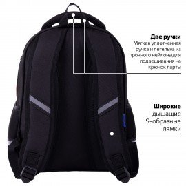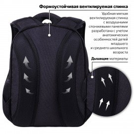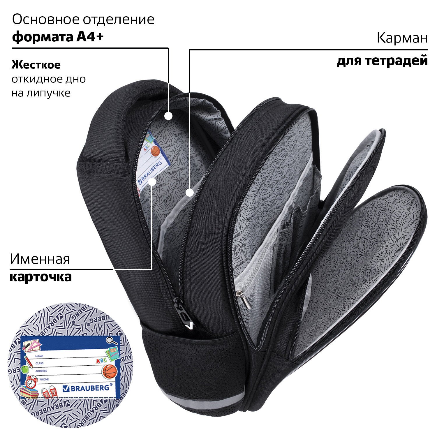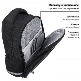 В основном отделении рюкзака можно легко и быстро разместить учебники и тетради формата А4+, воспользоваться дополнительным карманом. Также в основном отделении находится именная карточка школьника. Фронтальное отделение вмещает тетради и учебники формата А5, внутри находится органайзер для канцтоваров, карман для телефона и отделение из сетки на молнии. Такая организация пространства поможет держать принадлежности в сохранности и приучить ребенка к порядку.