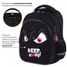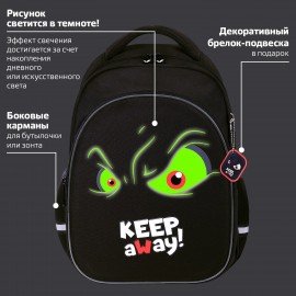 Рюкзак BRAUBERG OPTIMA, 2 отделения, с брелоком, "Keep away", СВЕТЯЩИЙСЯ, 36х27х18 см, 271361