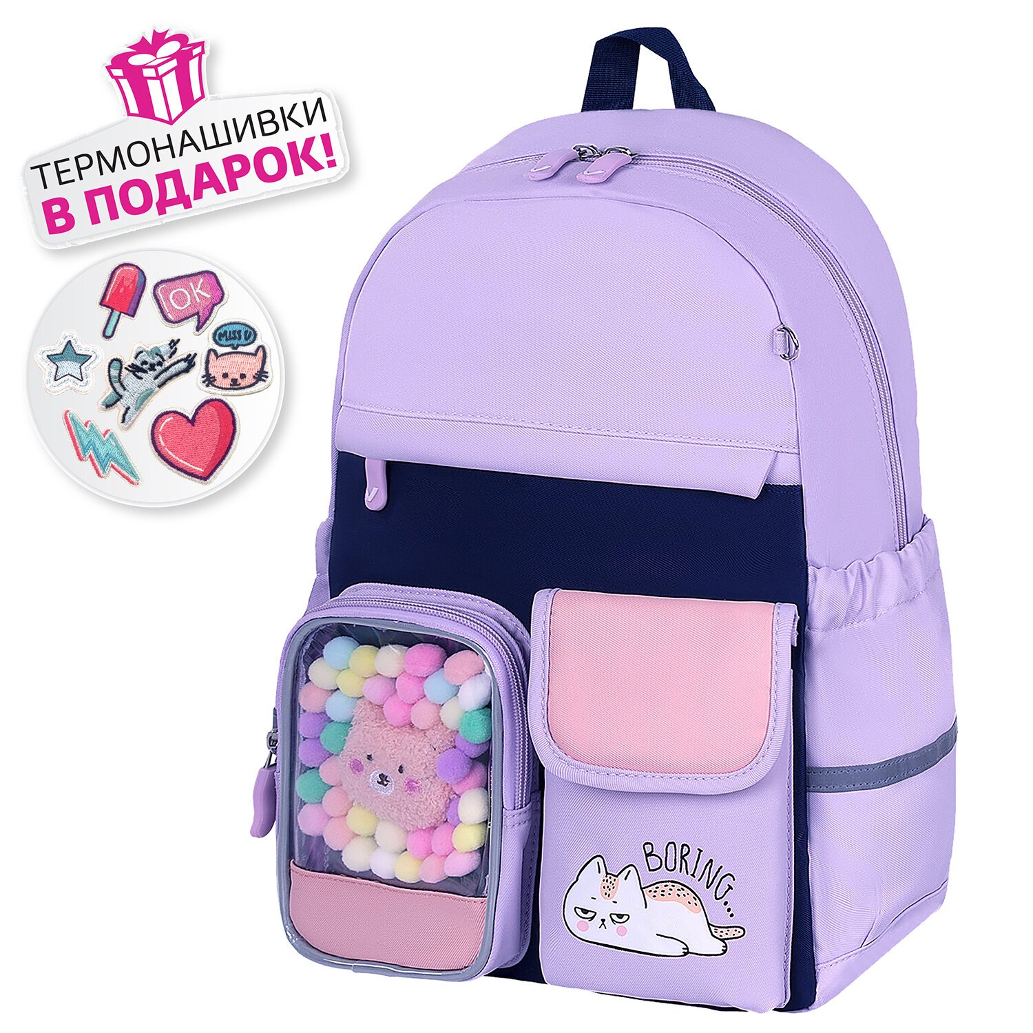 Термонашивки в подарок! Возможность создать свой неповторимый дизайн: просто размести термонашивки на рюкзаке и тщательно прогладь утюгом в режиме с паром. За несколько минут можно создать уникальный образ!