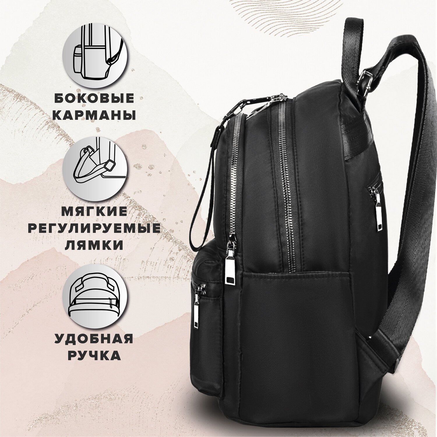 Рюкзак BRAUBERG PODIUM женский, 2 отделения, карман-антивор, нейлон, черный, 33х24х13 см, 270816