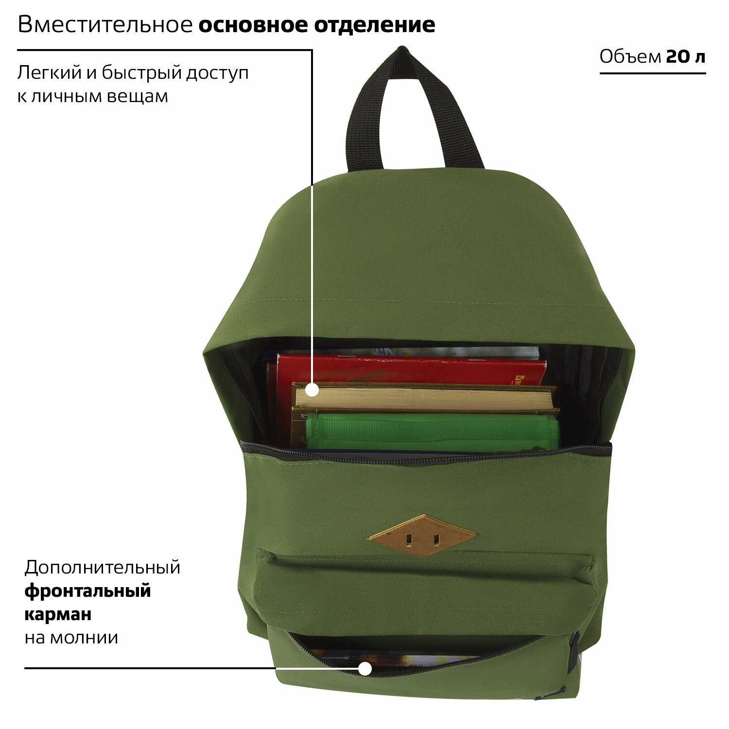 Рюкзак BRAUBERG СИТИ-ФОРМАТ один тон, универсальный, зеленый, 41х32х14 см, 225382