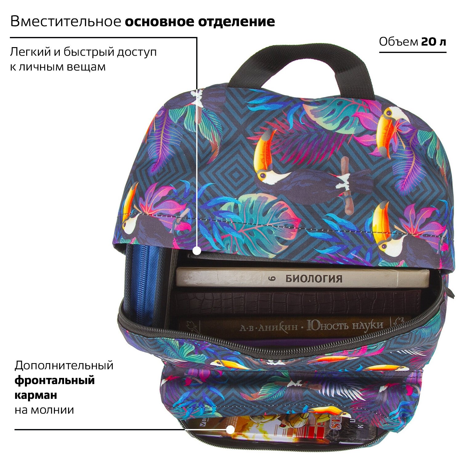 Рюкзак BRAUBERG СИТИ-ФОРМАТ универсальный, "Toucans", разноцветный, 41х32х14 см, 228847