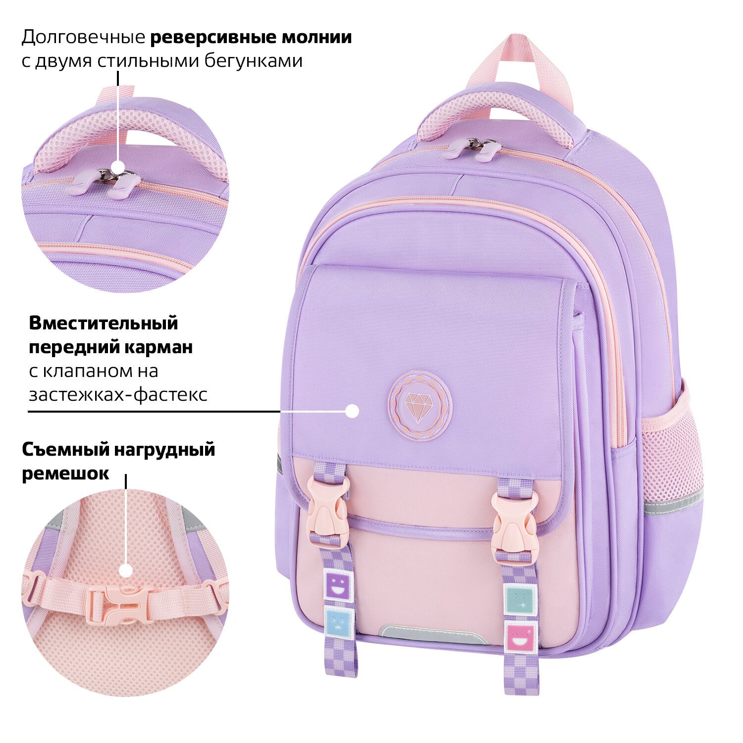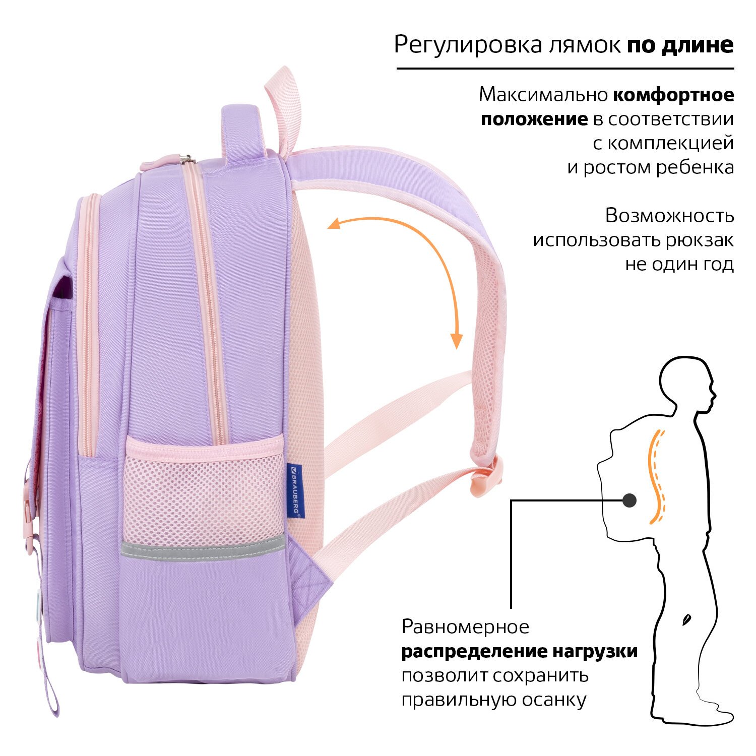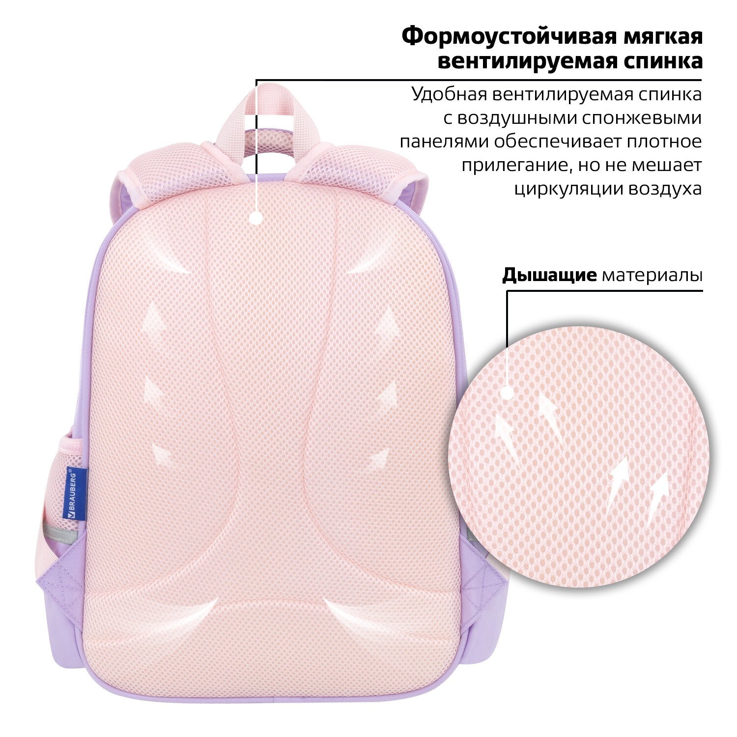 Удобная мягкая вентилируемая спинка с воздушными спонжевыми панелями разработана с учетом анатомических особенностей детей младшего и среднего школьного возраста. Рюкзак оснащен съемным нагрудным ремешком, который снижает нагрузку на спину. В процессе эксплуатации равномерное распределение нагрузки позволит сохранить правильную осанку!