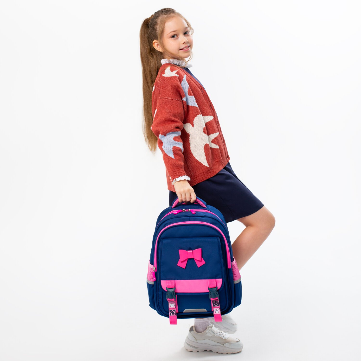 В основном отделении рюкзака можно легко и быстро разместить учебники и тетради формата А4+, а также воспользоваться прижимным отделением. Фронтальное отделение и большой передний карман-клапан на застежках-фастекс вмещают тетради и учебники формата А5. Такая организация пространства поможет держать принадлежности в сохранности и приучить ребенка к порядку.