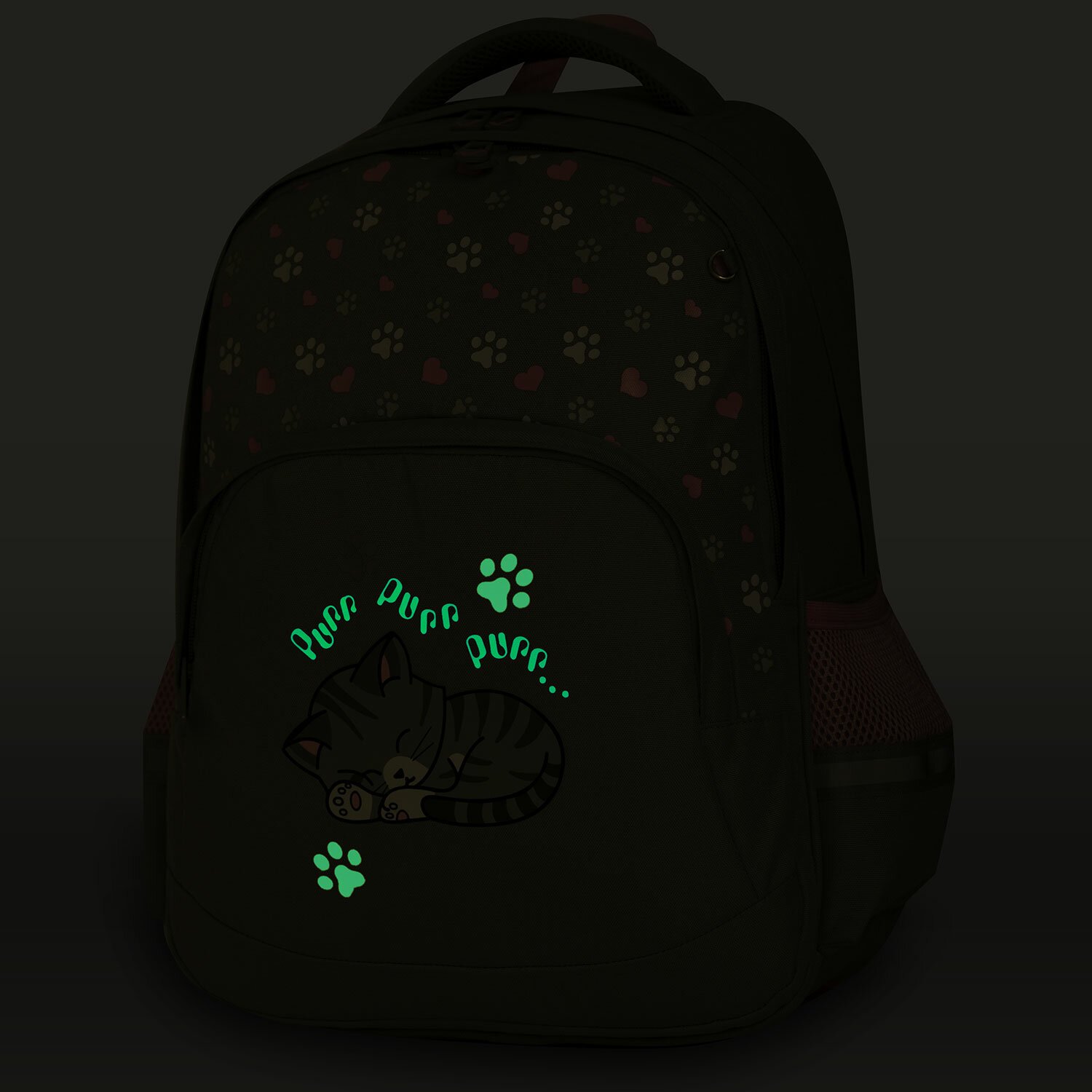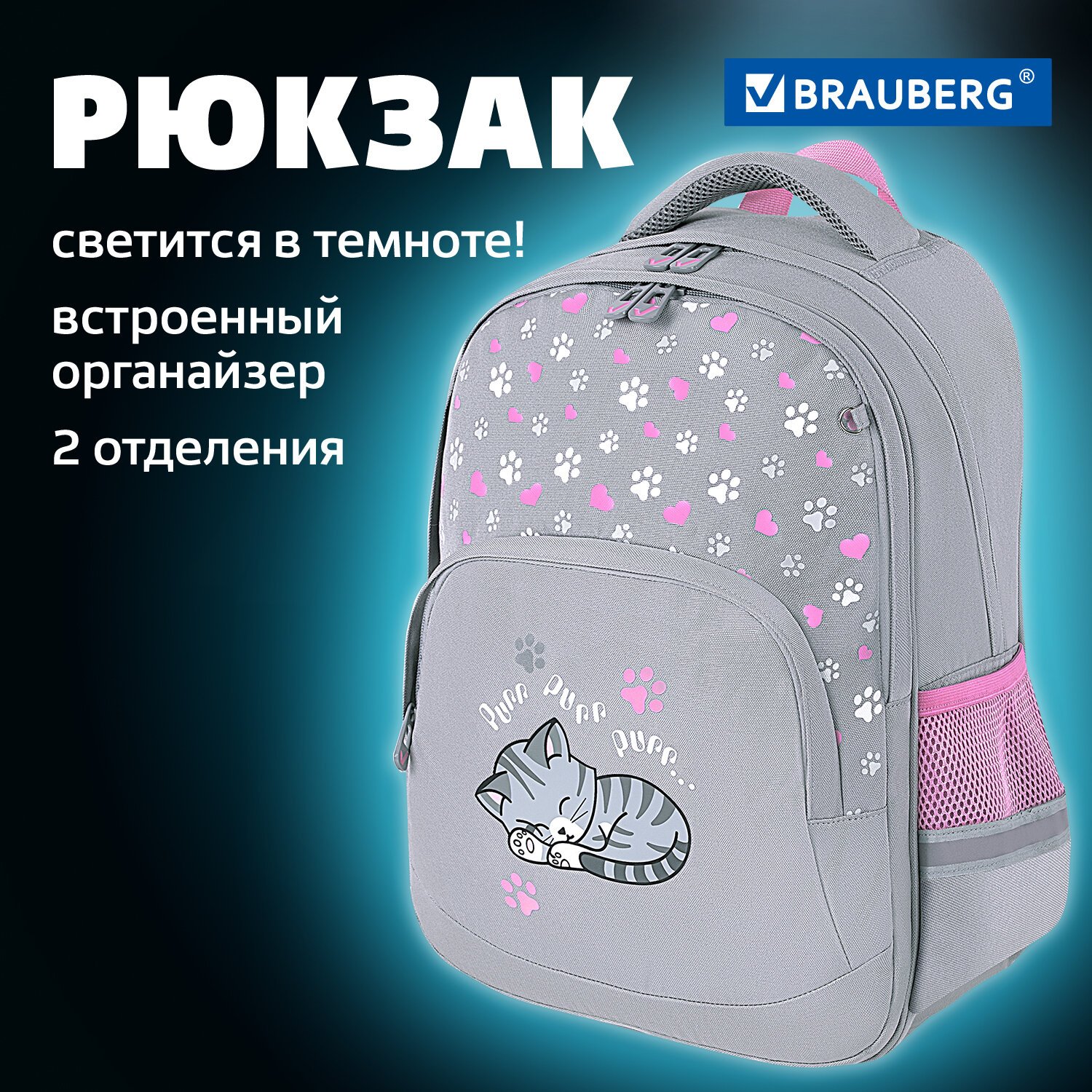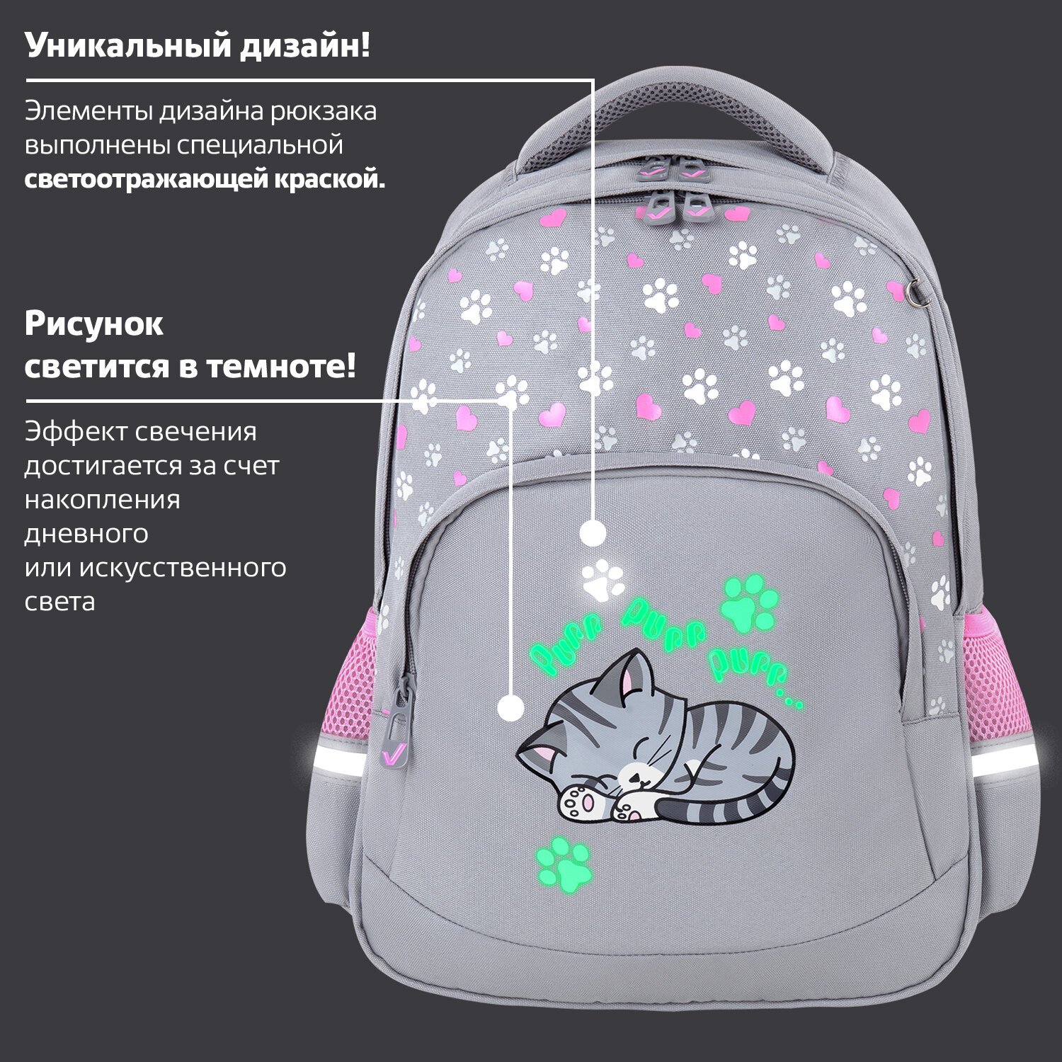 Рюкзак BRAUBERG SOFT, 2 отделения, 3 кармана, "Sleepy cat", СВЕТЯЩИЙСЯ, 40х31х15 см, 272035