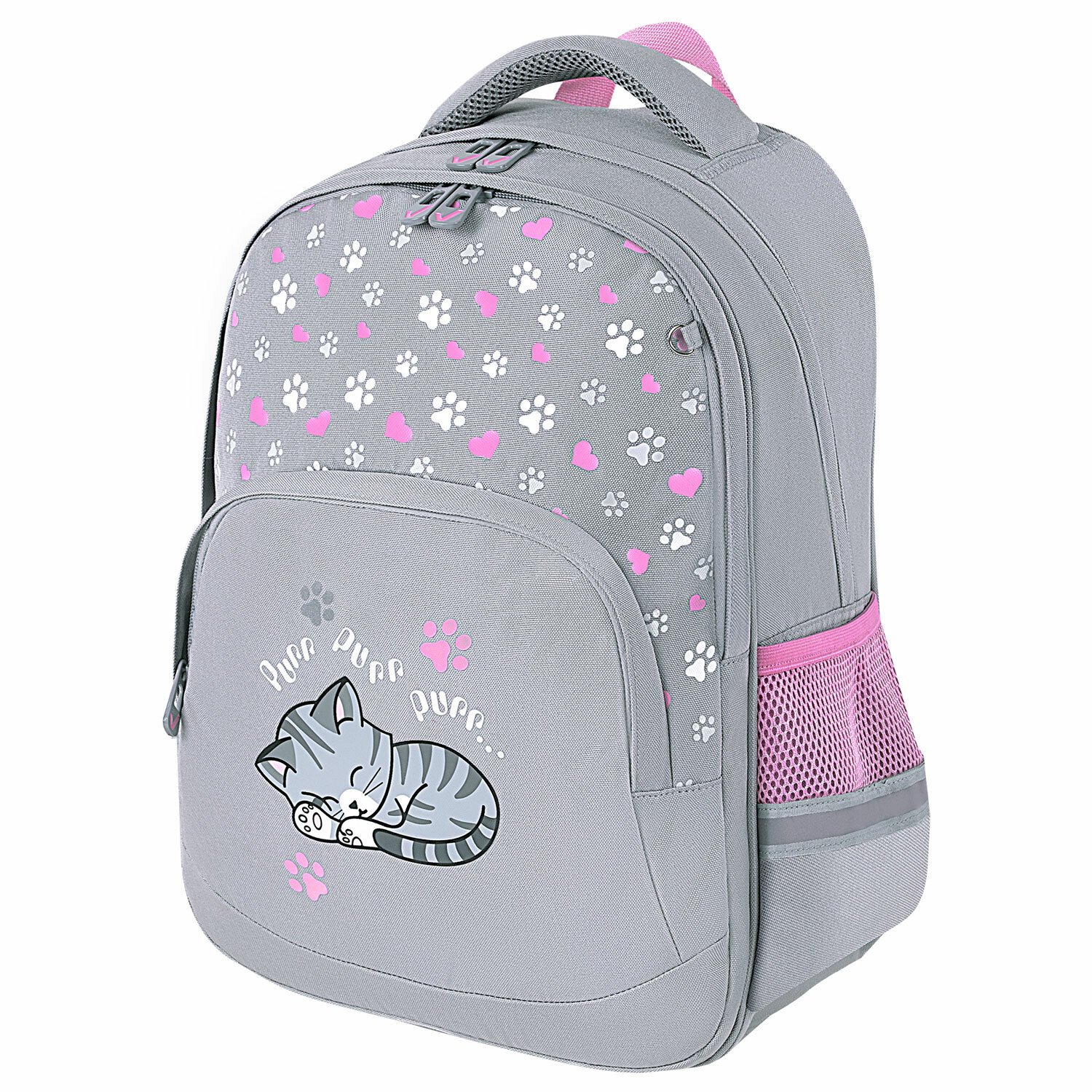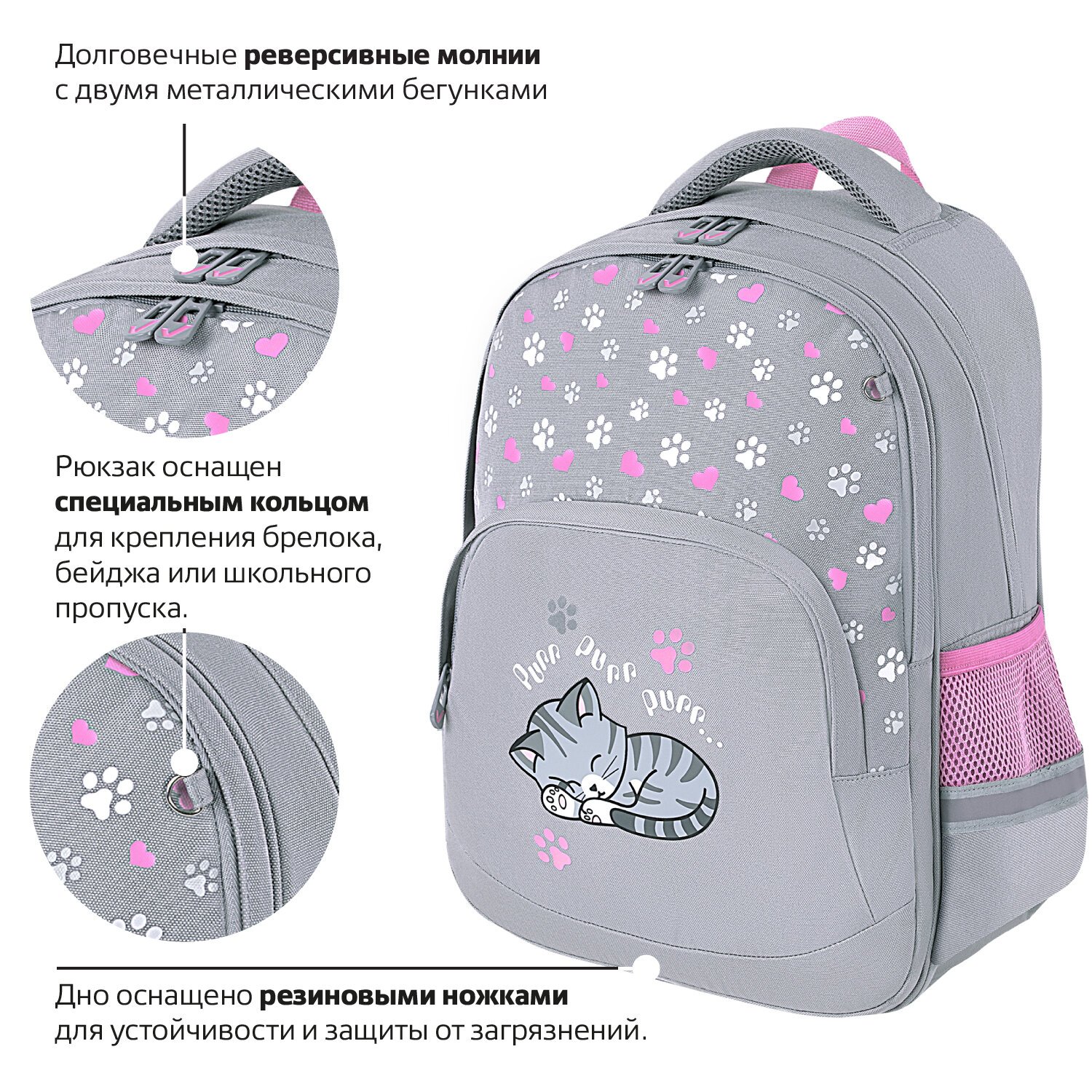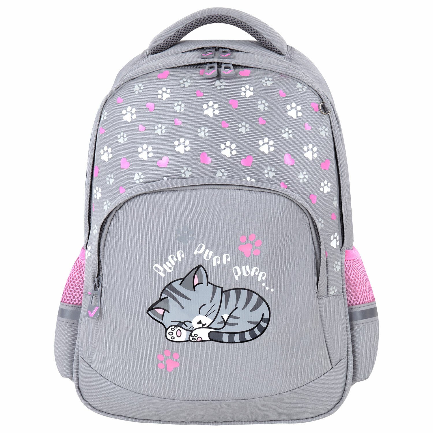 Рюкзак BRAUBERG SOFT, 2 отделения, 3 кармана, "Sleepy cat", СВЕТЯЩИЙСЯ, 40х31х15 см, 272035