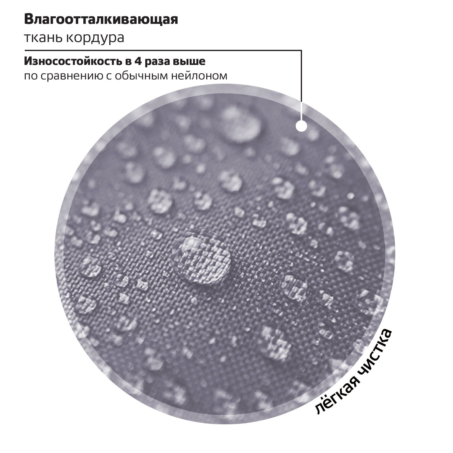 Рюкзак изготовлен из высококачественной влагоотталкивающей нейлоновой ткани - кордура, в которой за счёт особой структуры нити достигнута четырёхкратная стойкость к истиранию по сравнению с простым нейлоном, также эта ткань легко чистится.