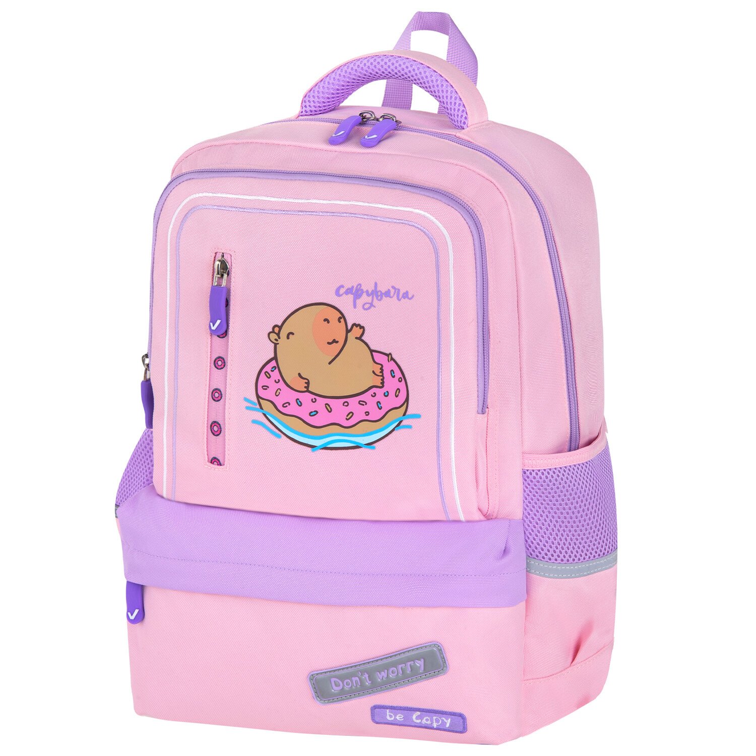 Рюкзак BRAUBERG STAR, 1 отделение, 5 карманов, "Capybara", розовый, 40x29x13 см, 272062