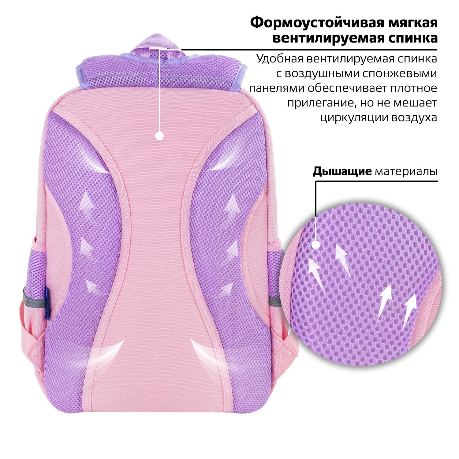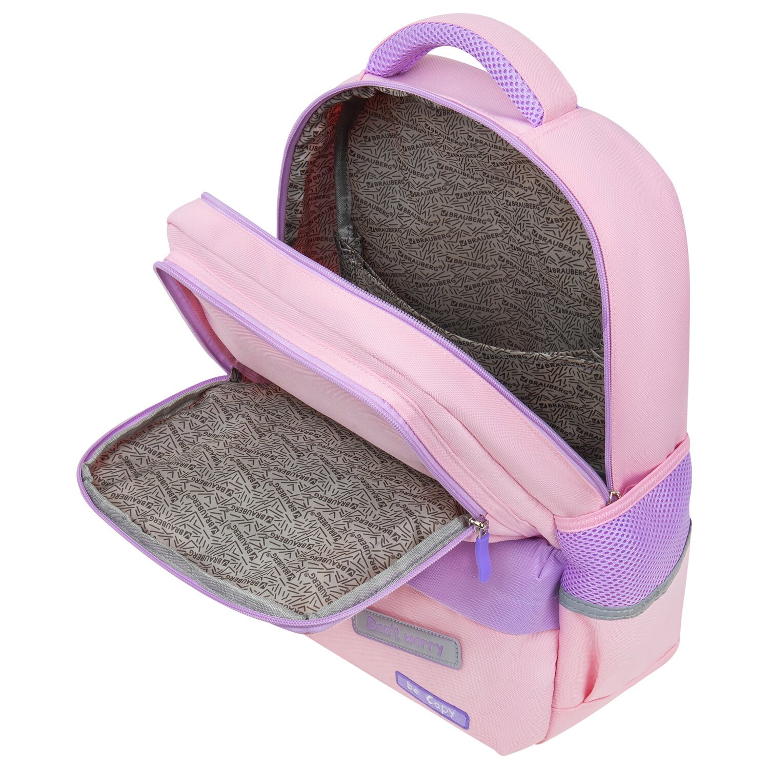 В основном отделении рюкзака можно легко и быстро разместить учебники и тетради формата А4+, а также воспользоваться прижимными разделителями. Спереди рюкзака располагаются два больших кармана на молнии, которые вмещают тетради формата А5 и прочие канцелярские принадлежности, и небольшой карман для различных мелочей или телефона. Такая организация пространства позволит держать школьные принадлежности в сохранности и поможет приучить ребенка к порядку.