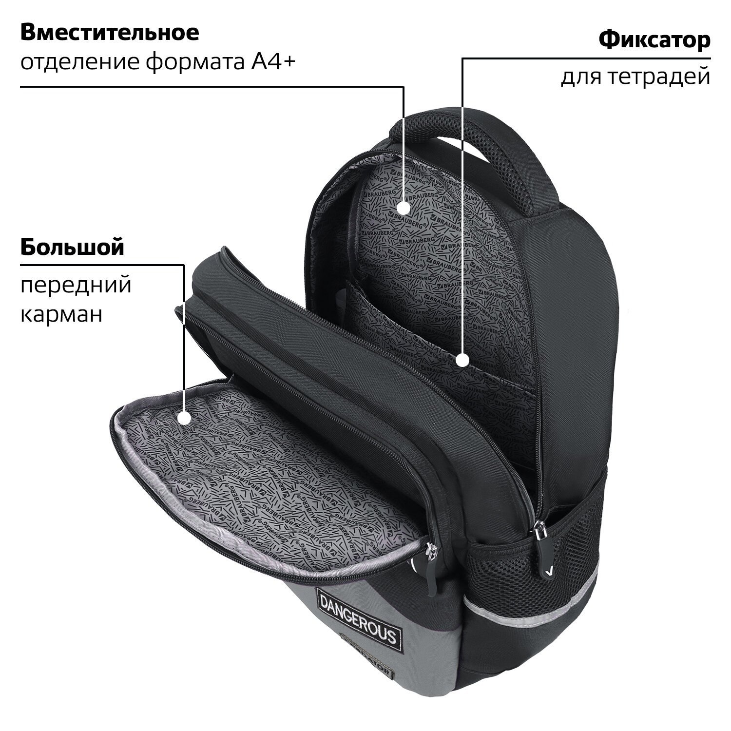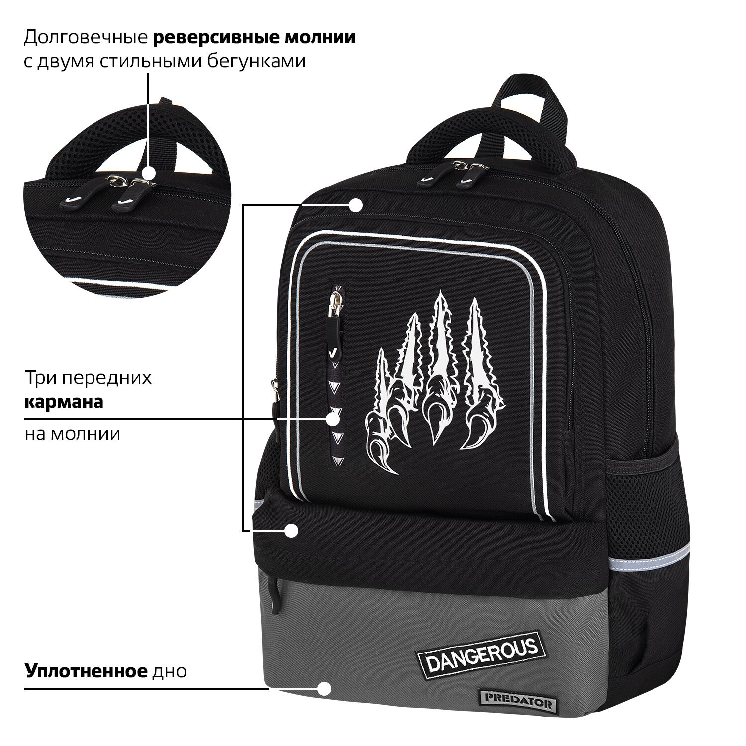 Рюкзак BRAUBERG STAR, 1 отделение, 5 карманов, "Claws", черный, 40x29x13 см, 272061