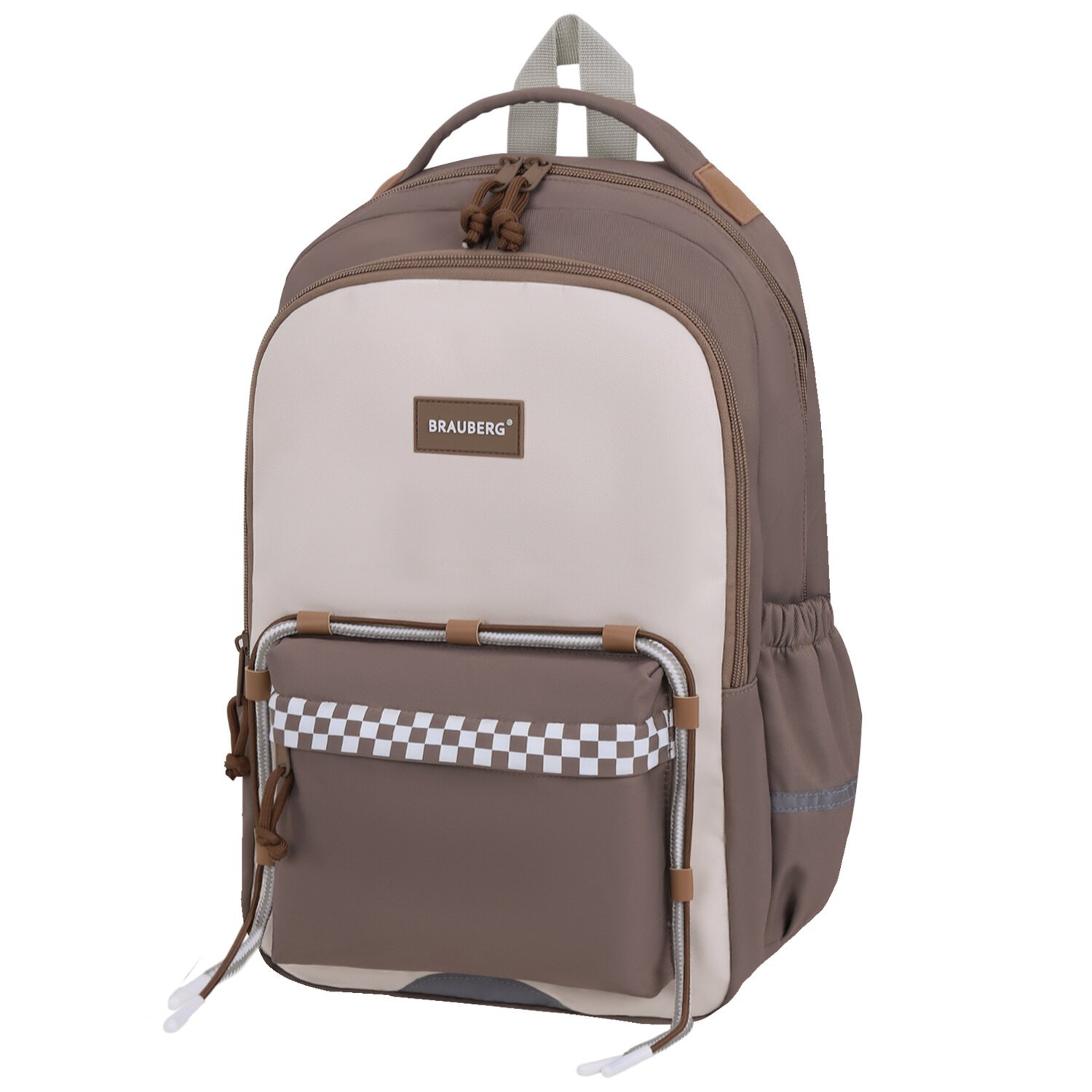 Рюкзак BRAUBERG STYLE, 2 отделения, 4 кармана, "Brown checks", коричневый, 40х26х15 см, 274412